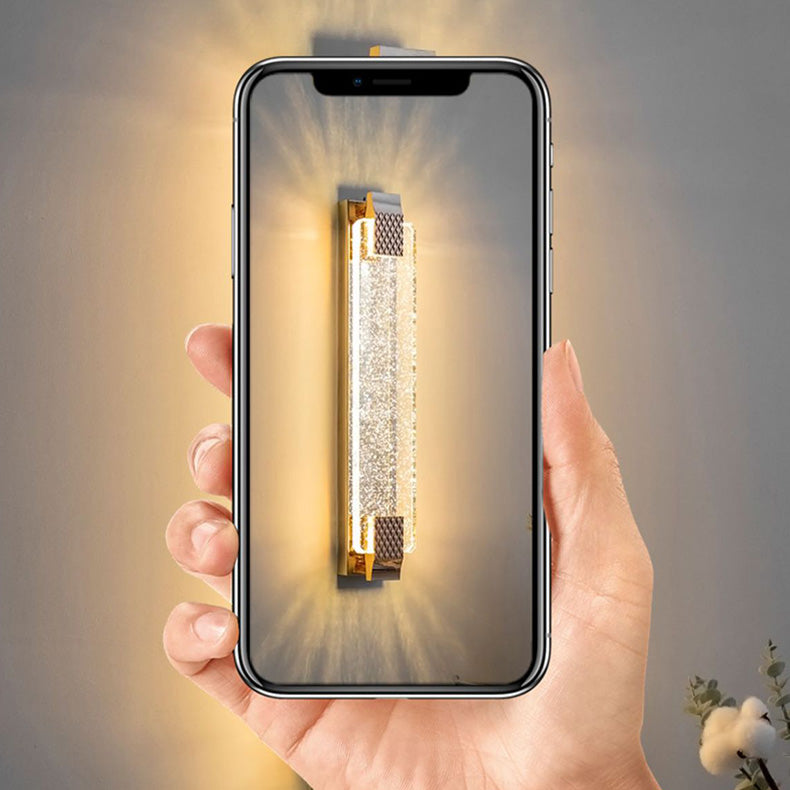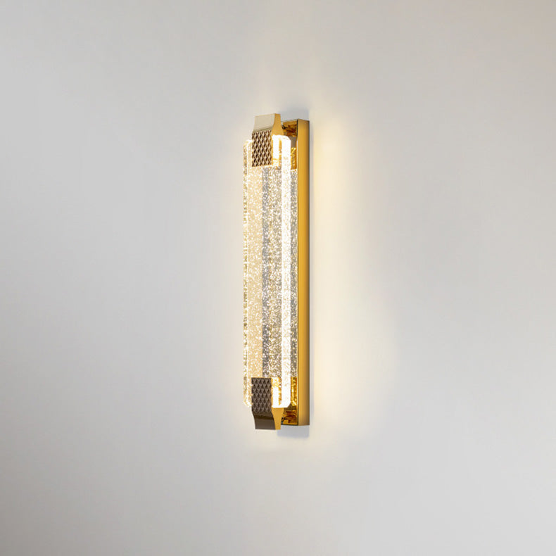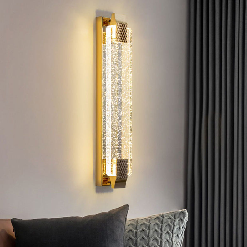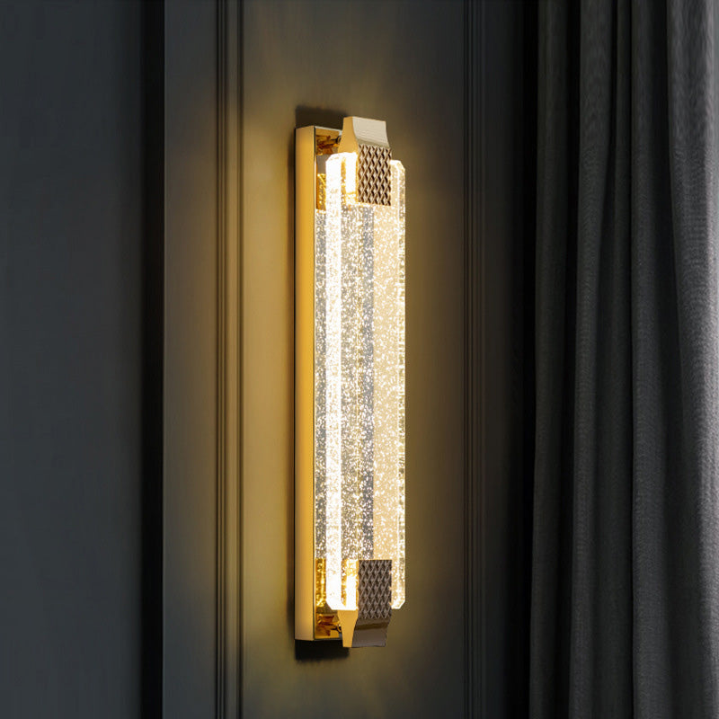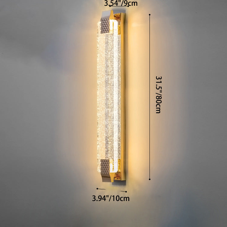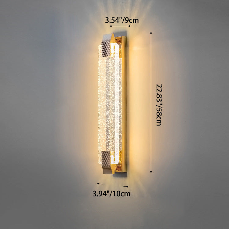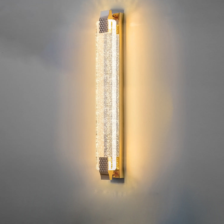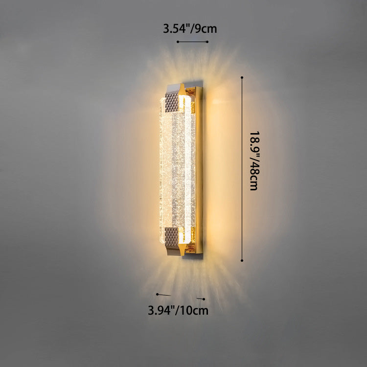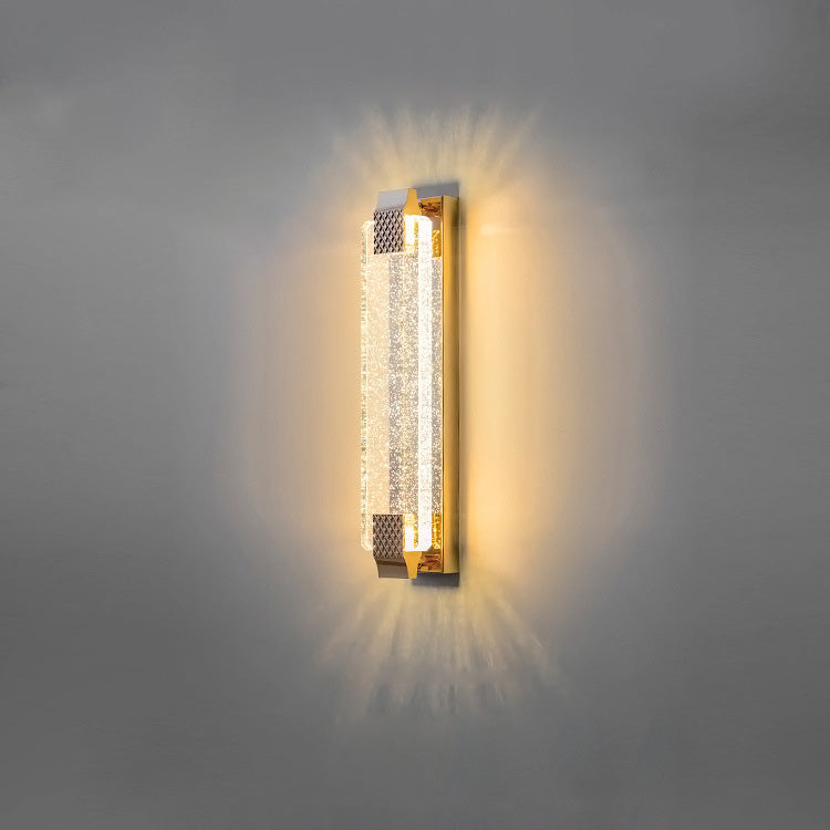 Contemporary Luxury Dazzling Rectangular Bubble Textured Crystal Shade Stainless Steel LED Wall Sconce Lamp For Living Room