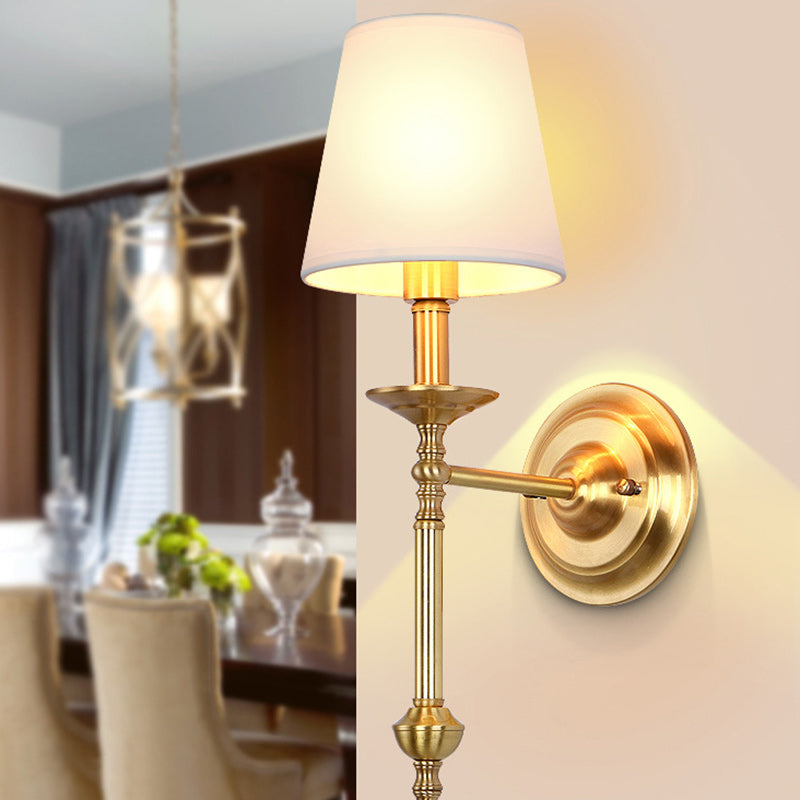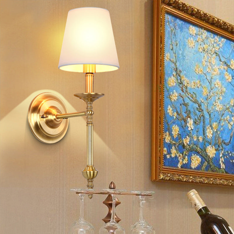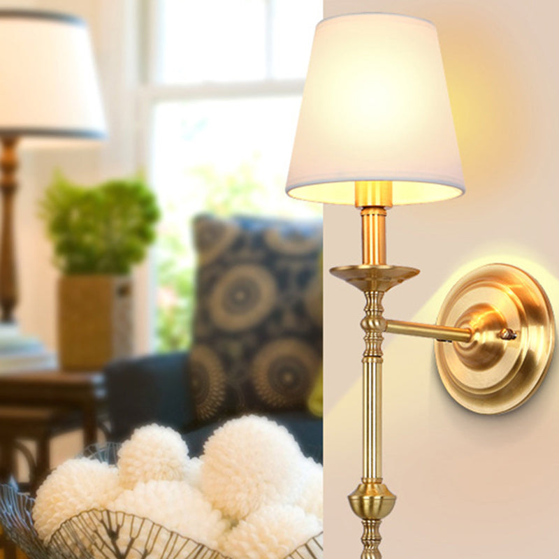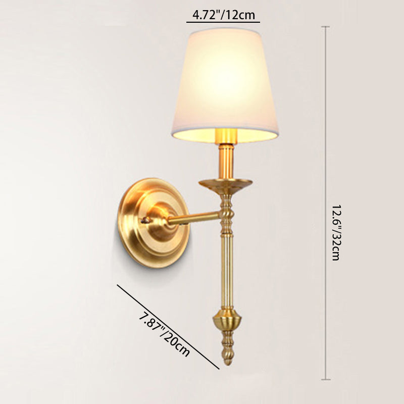 Contemporary Luxury Drum Copper Fabric 1-Light Wall Sconce Lamp For Living Room