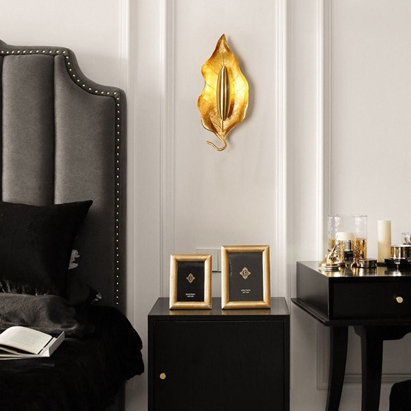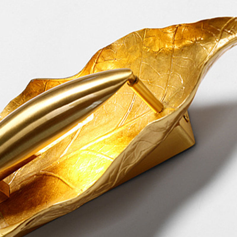 Contemporary Luxury Full Copper Leaves Design 1-Light Wall Sconce Lamp For Dining Room