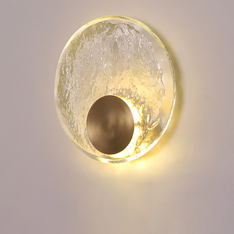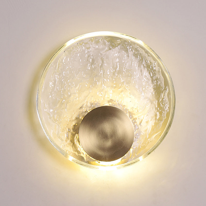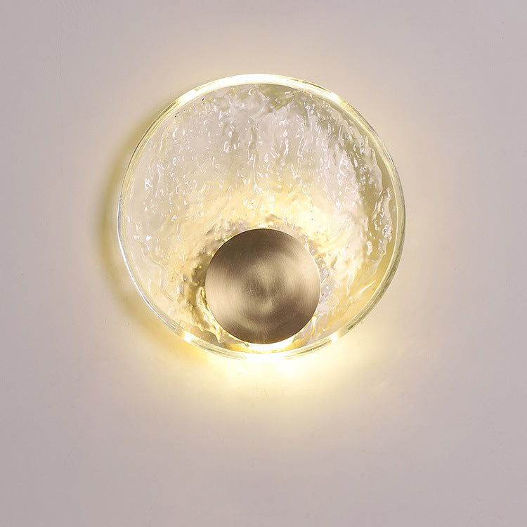 Contemporary Luxury Full Copper Water Ripple Circle Crystal LED Wall Sconce Lamp For Bedroom