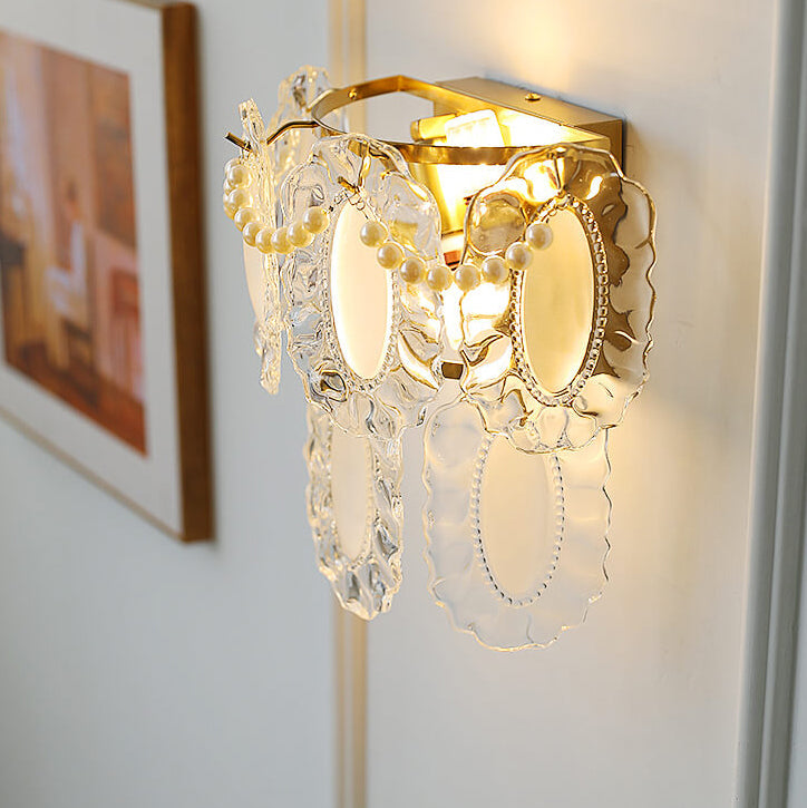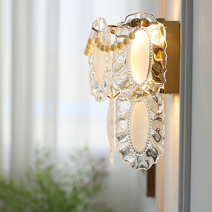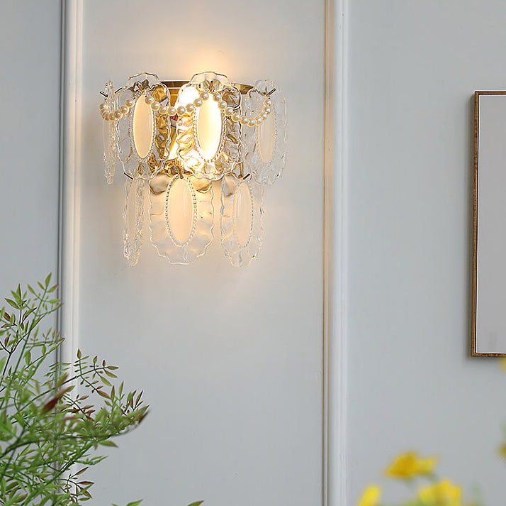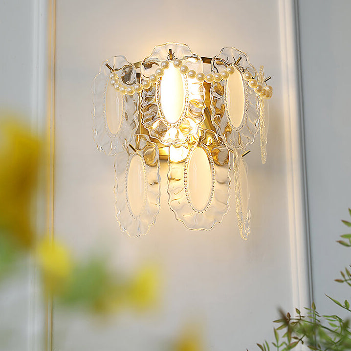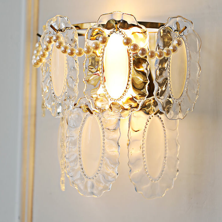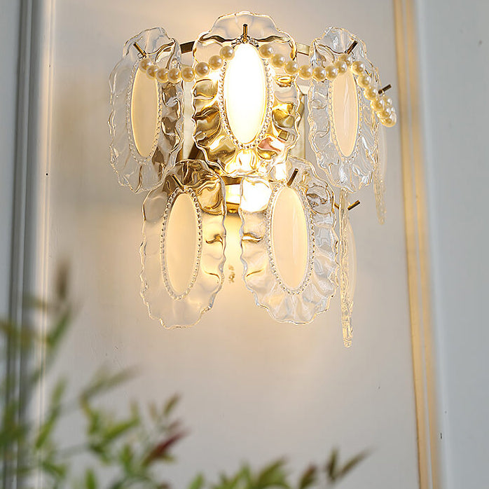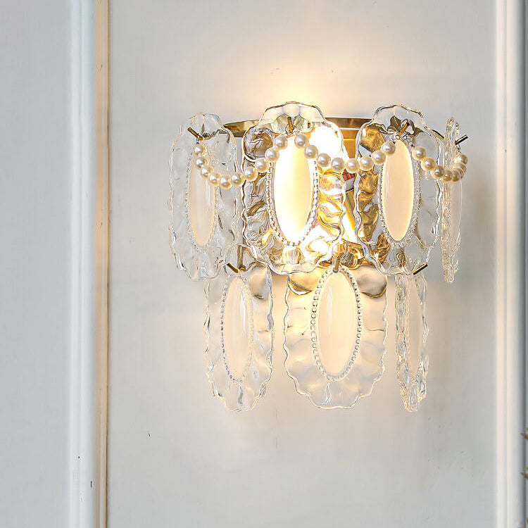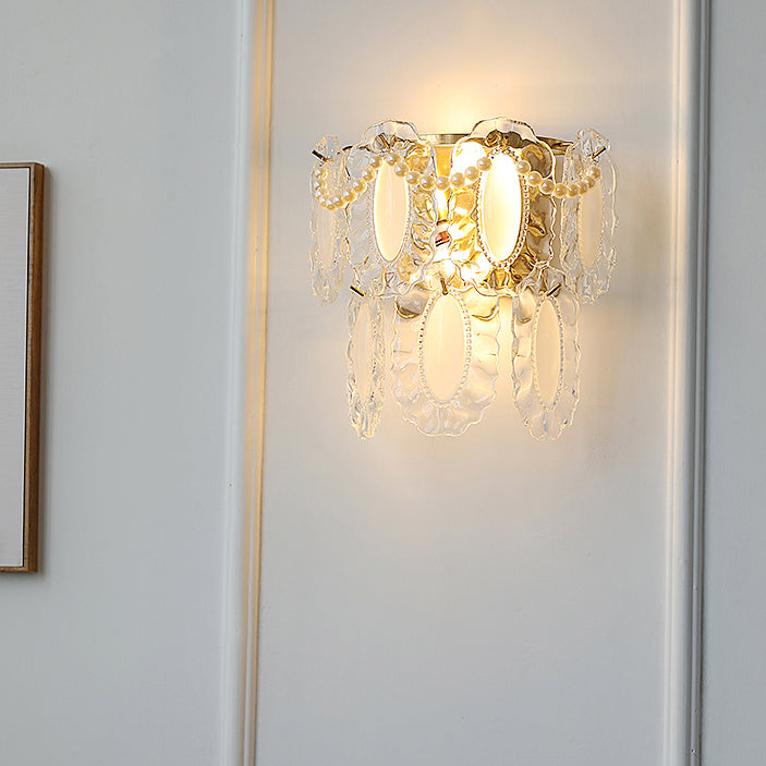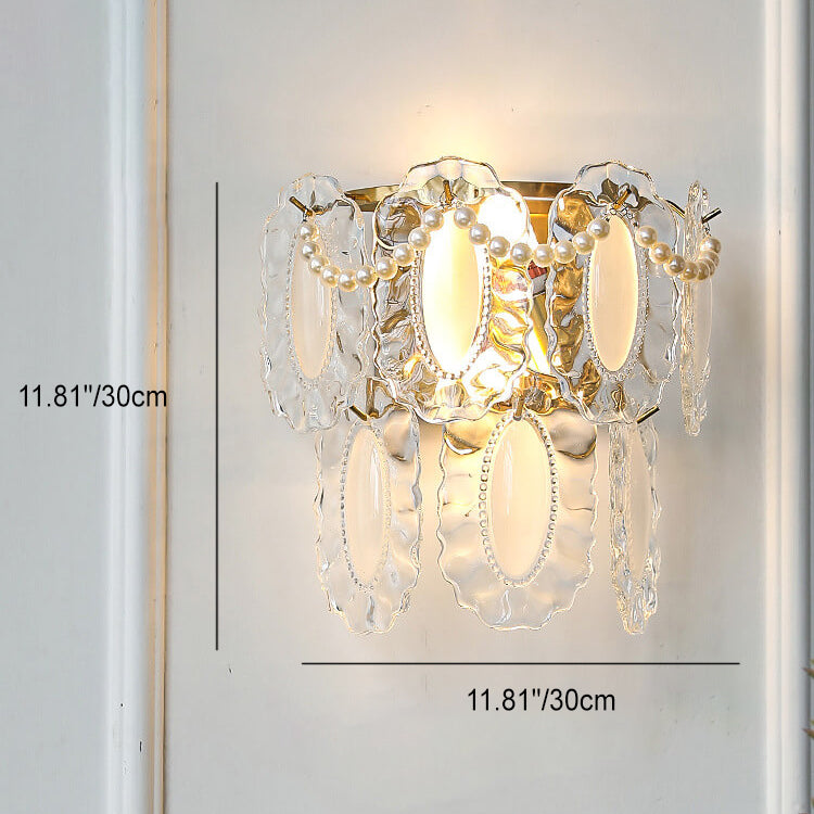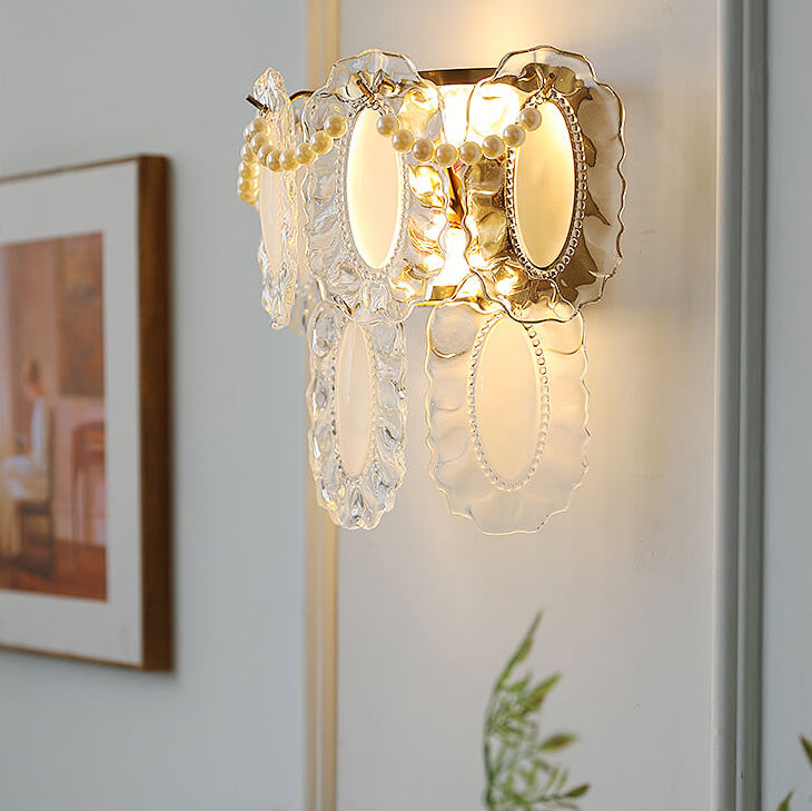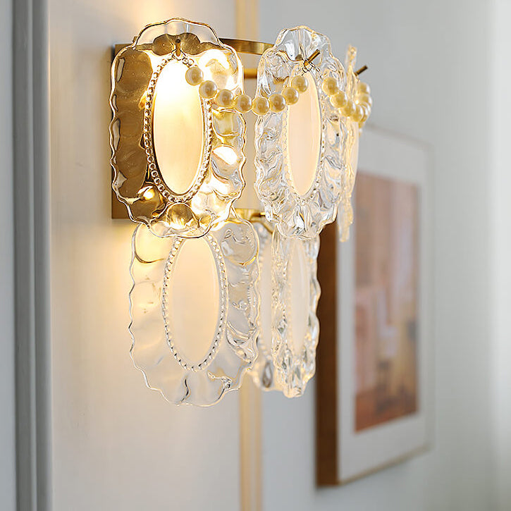 Contemporary Luxury Gold Finish Frame Pearl Water Grain Glass Sheet 2-Light Wall Sconce Lamp For Living Room