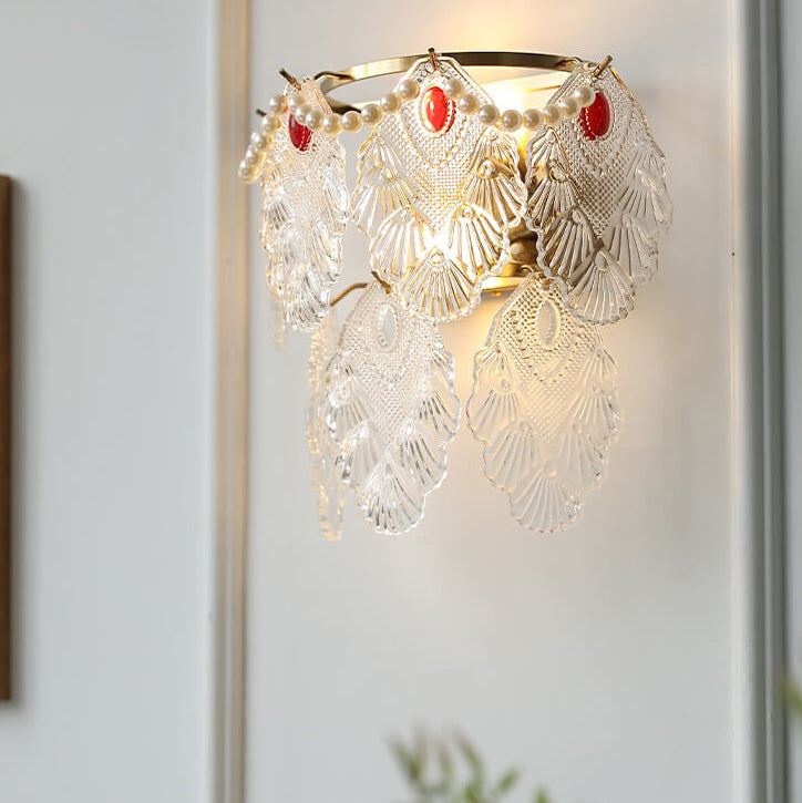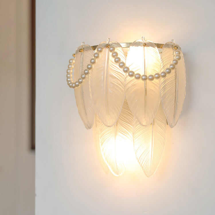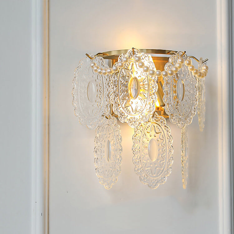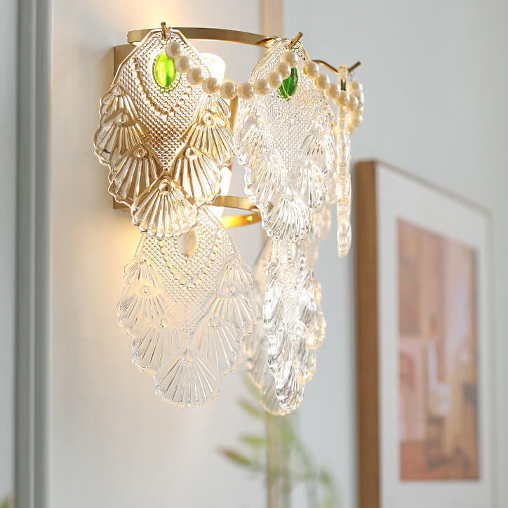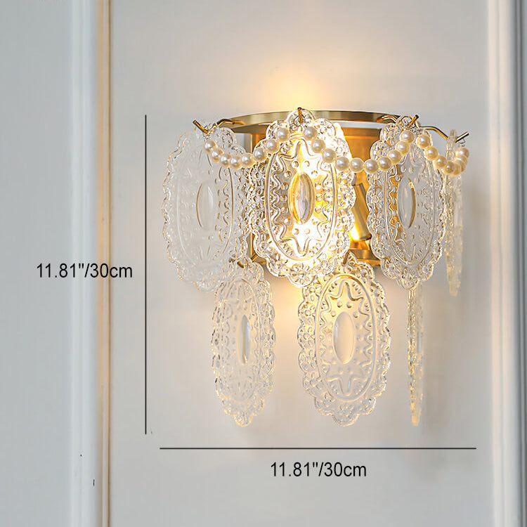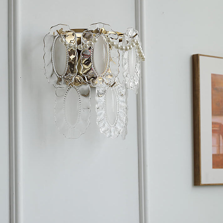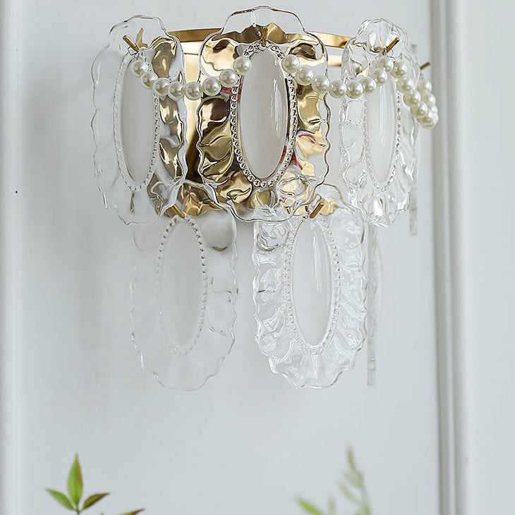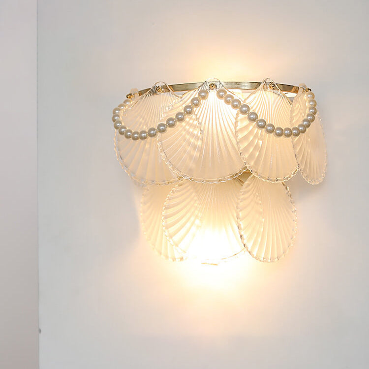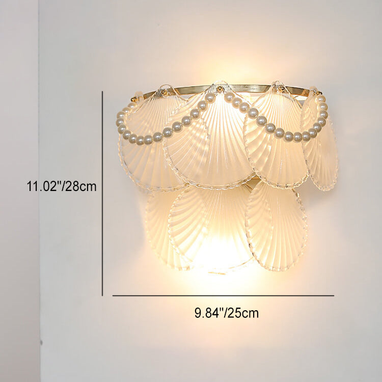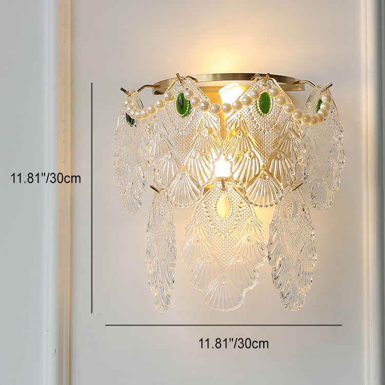 Contemporary Luxury Gold Finish Frame Pearl Water Grain Glass Sheet 2-Light Wall Sconce Lamp For Living Room