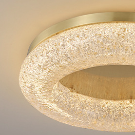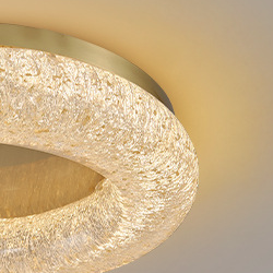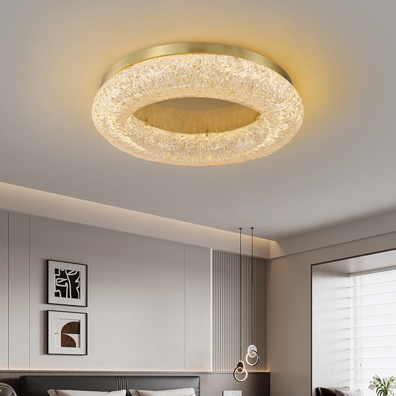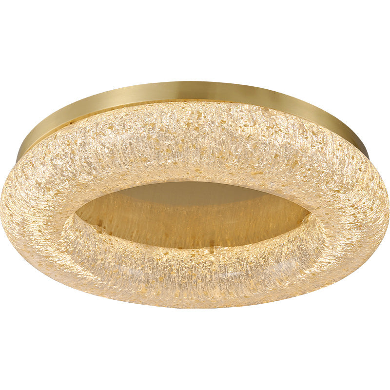 Contemporary Luxury Gold Leaf Resin Finish Copper Ring LED Flush Mount Ceiling Light For Living Room