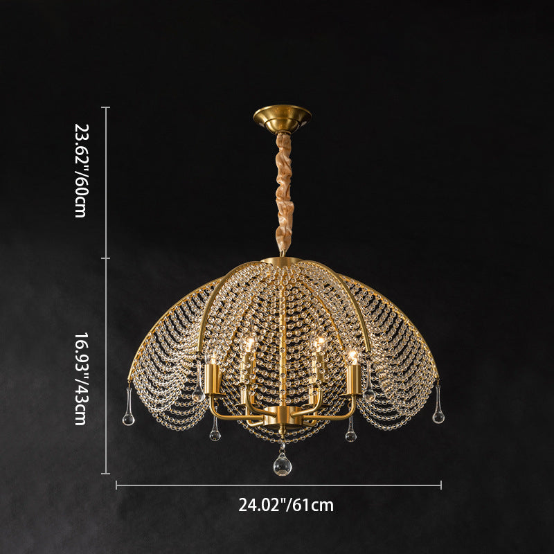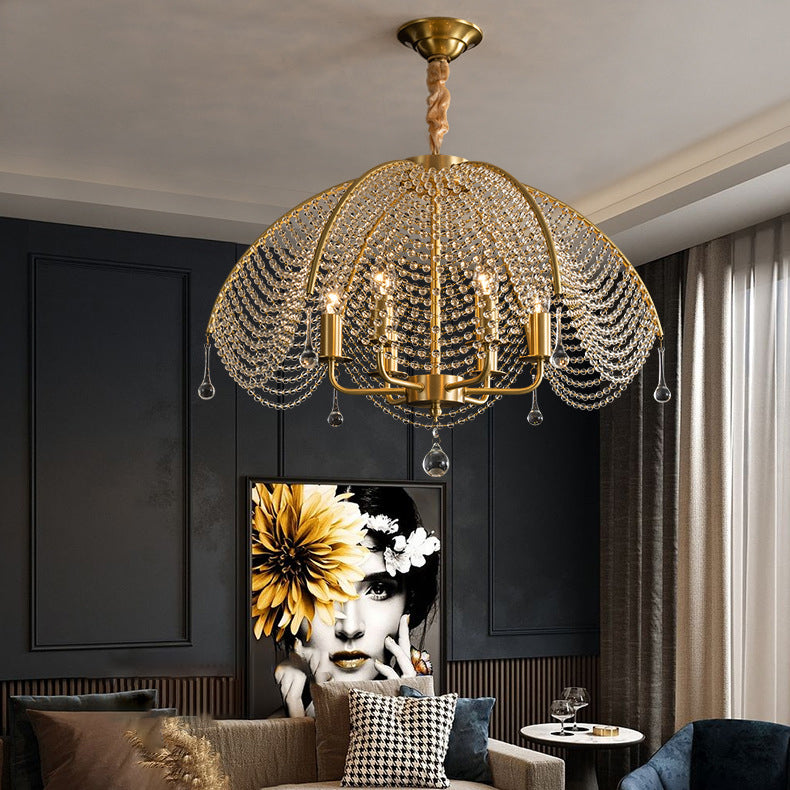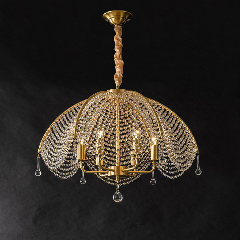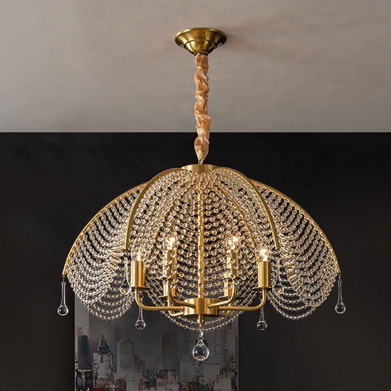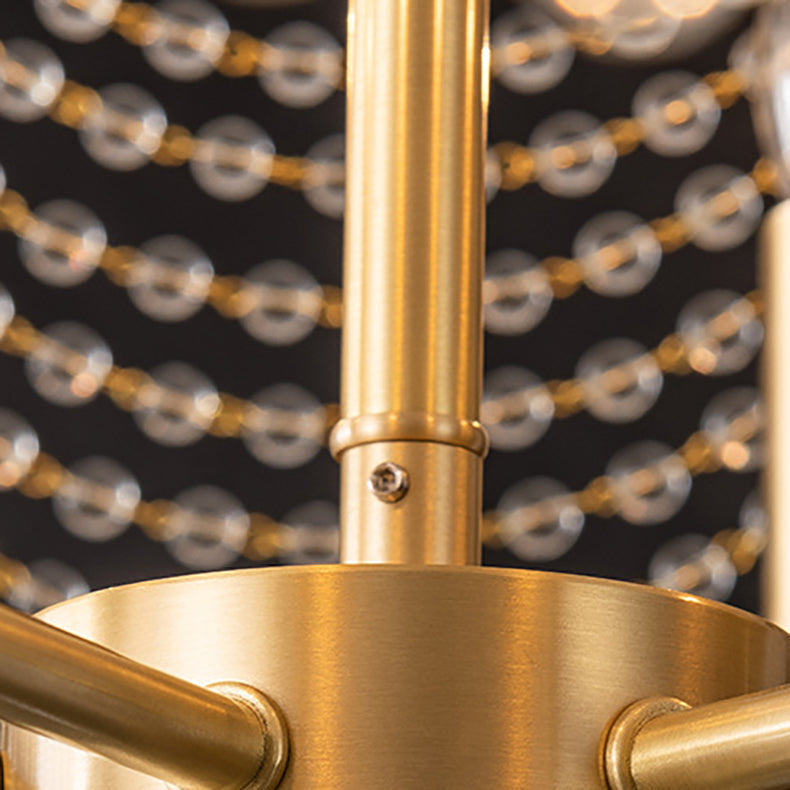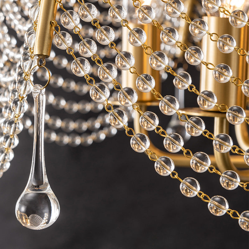 Contemporary Luxury Golden Finish Frame Crystal Beads 6-Light Chandelier For Living Room