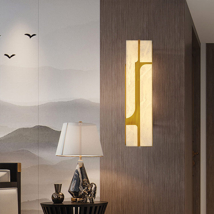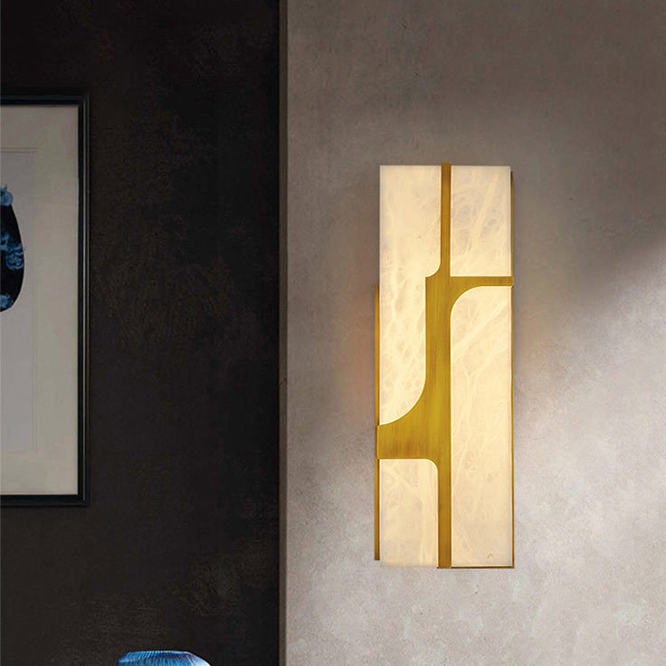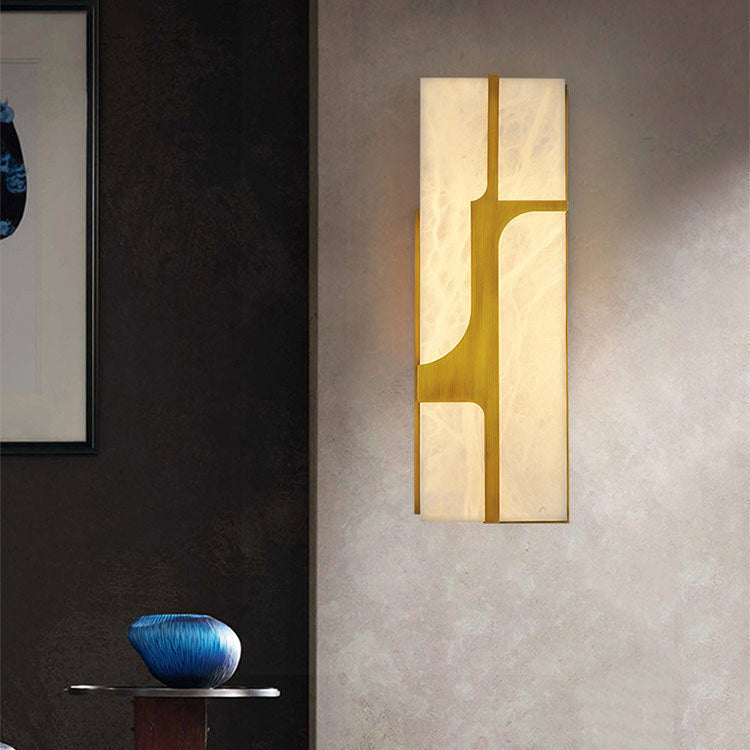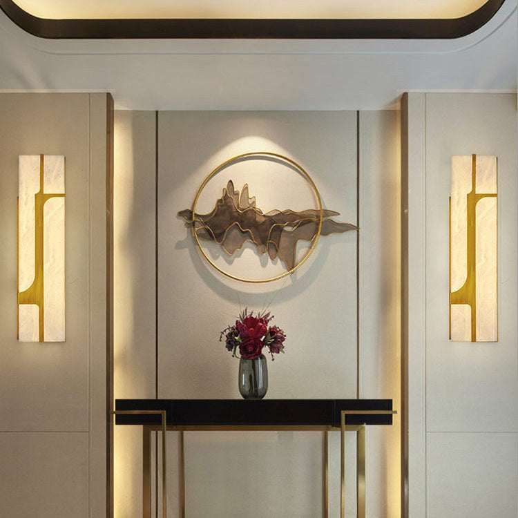 Contemporary Luxury Imitation Marble Rectangle Shade Stainless Steel LED Wall Sconce Lamp For Living Room