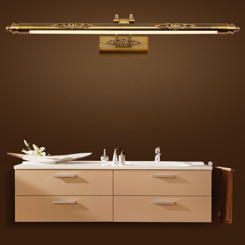 Contemporary Luxury Iron Aluminum Carved Long Strip Rocker Arm LED Vanity Mirror Front Wall Sconce Lamp For Bathroom