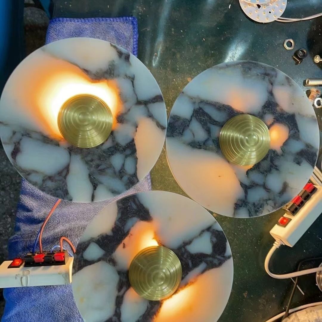 Contemporary Luxury Marble Geometric Circle LED Wall Sconce Lamp For Living Room