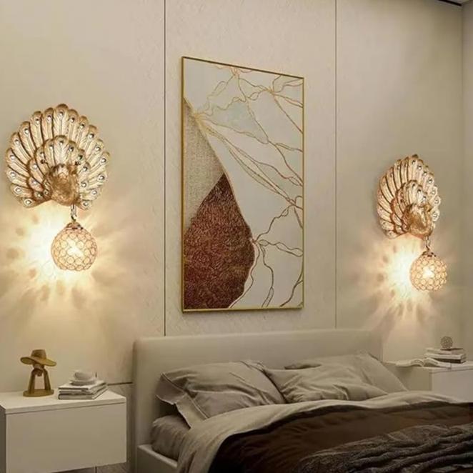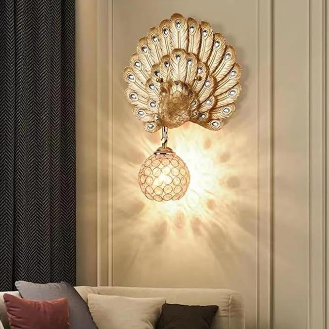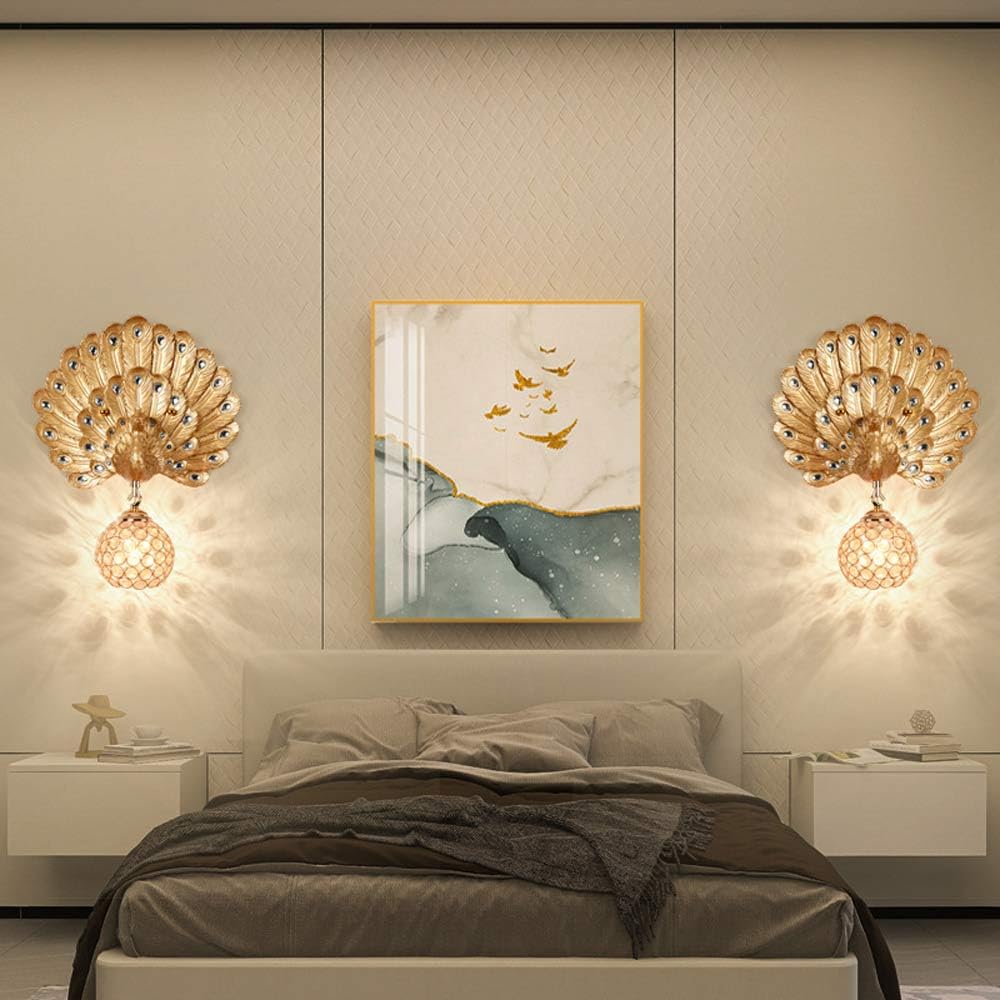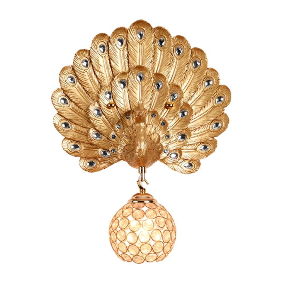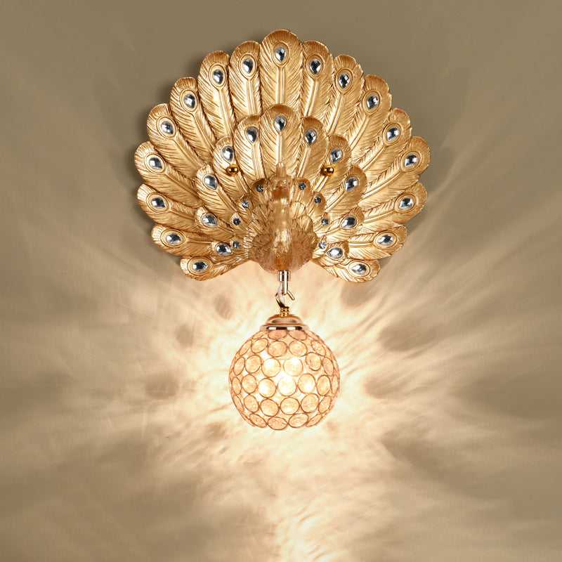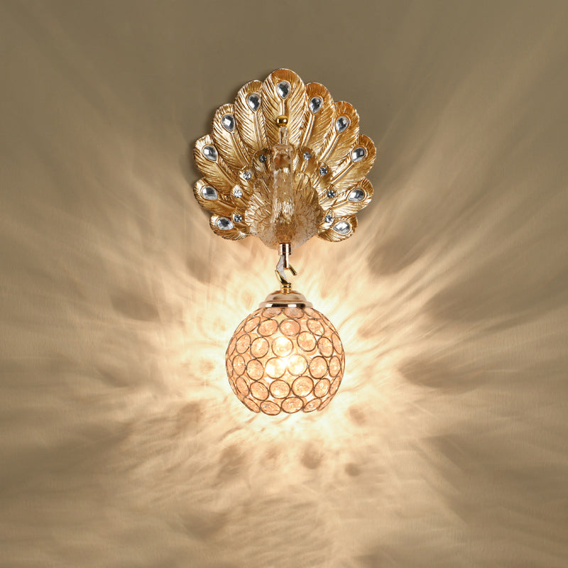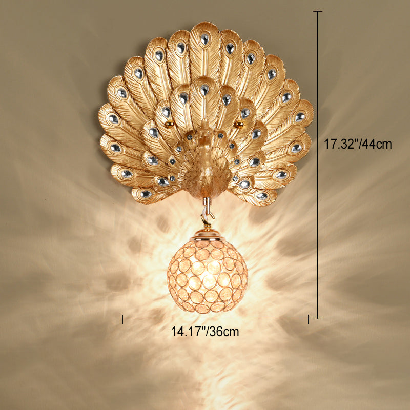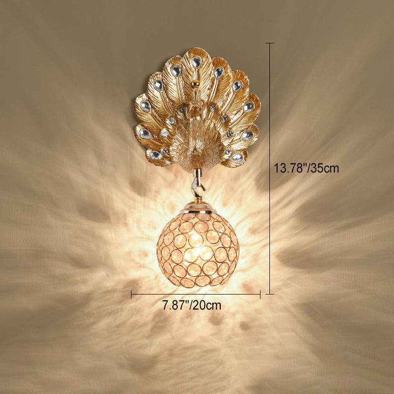 Contemporary Luxury Resin Peacock Crystal Round 1-Light Wall Sconce Lamp For Living Room