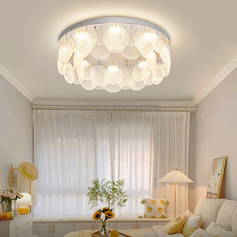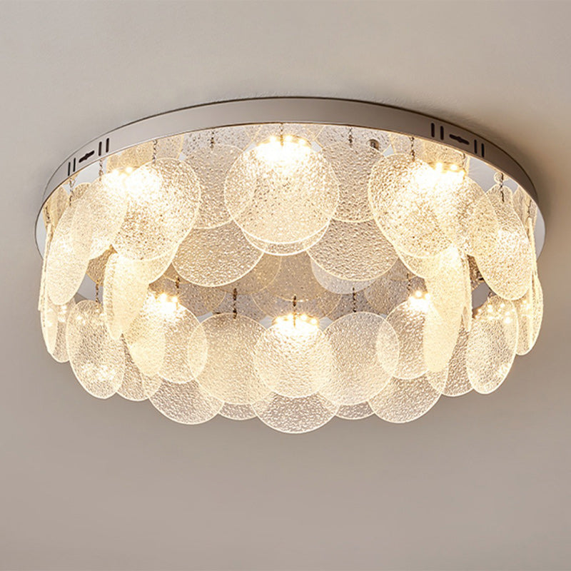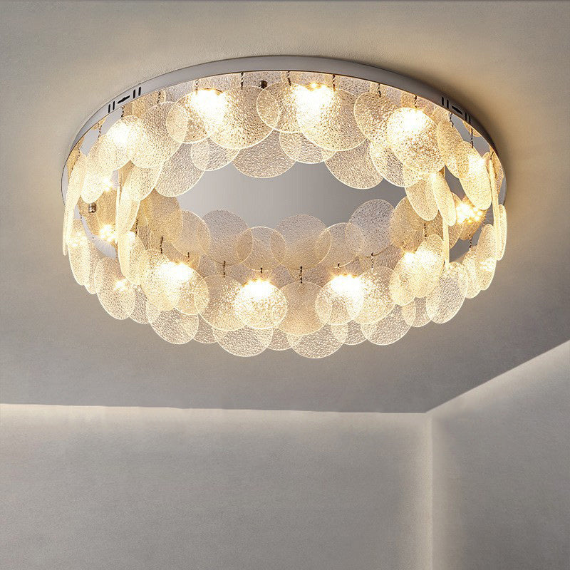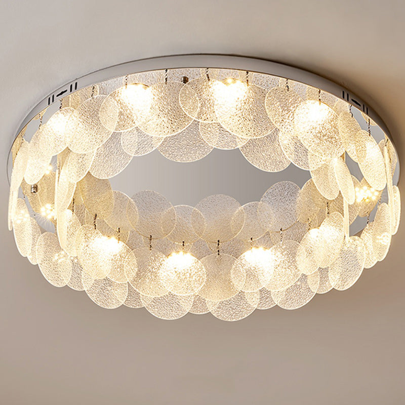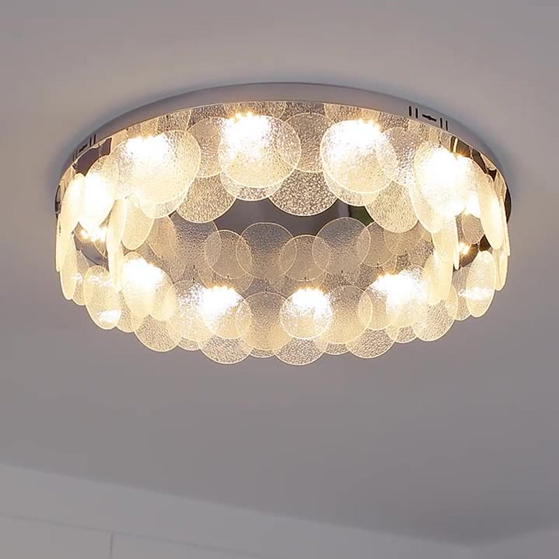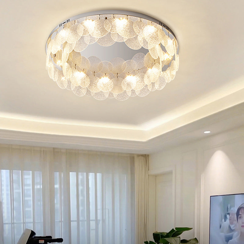Contemporary Luxury Round Stainless Steel Glass LED Flush Mount Ceiling Light For Living Room