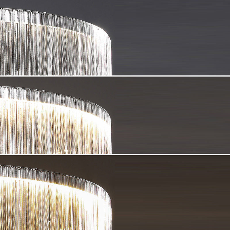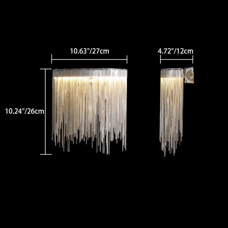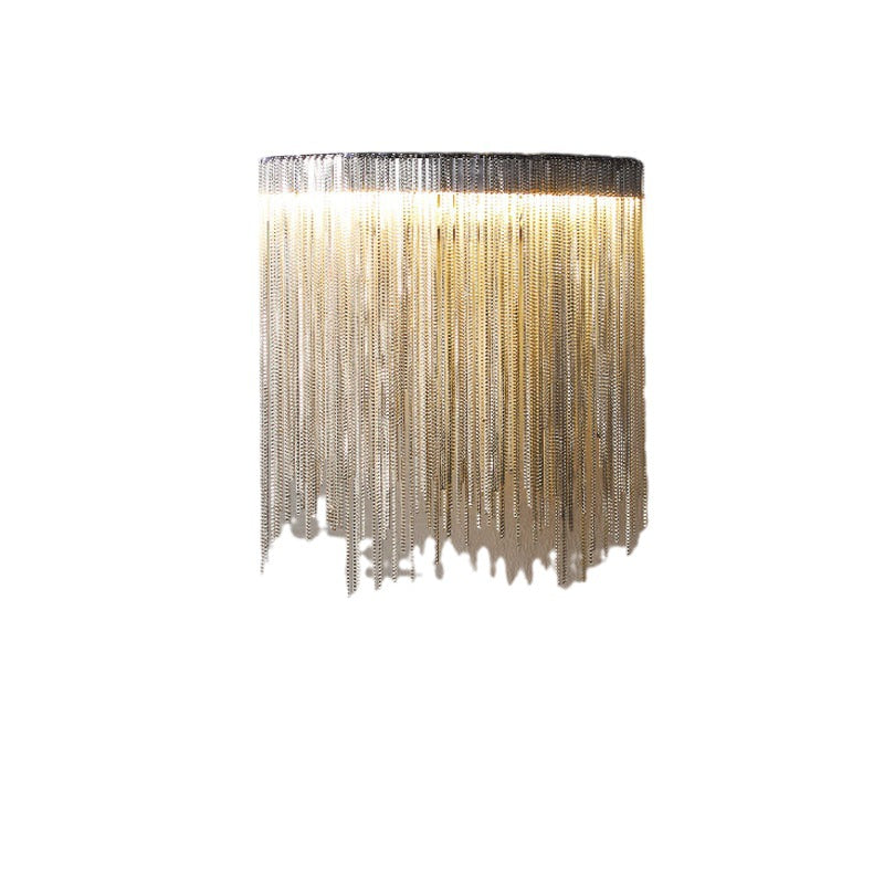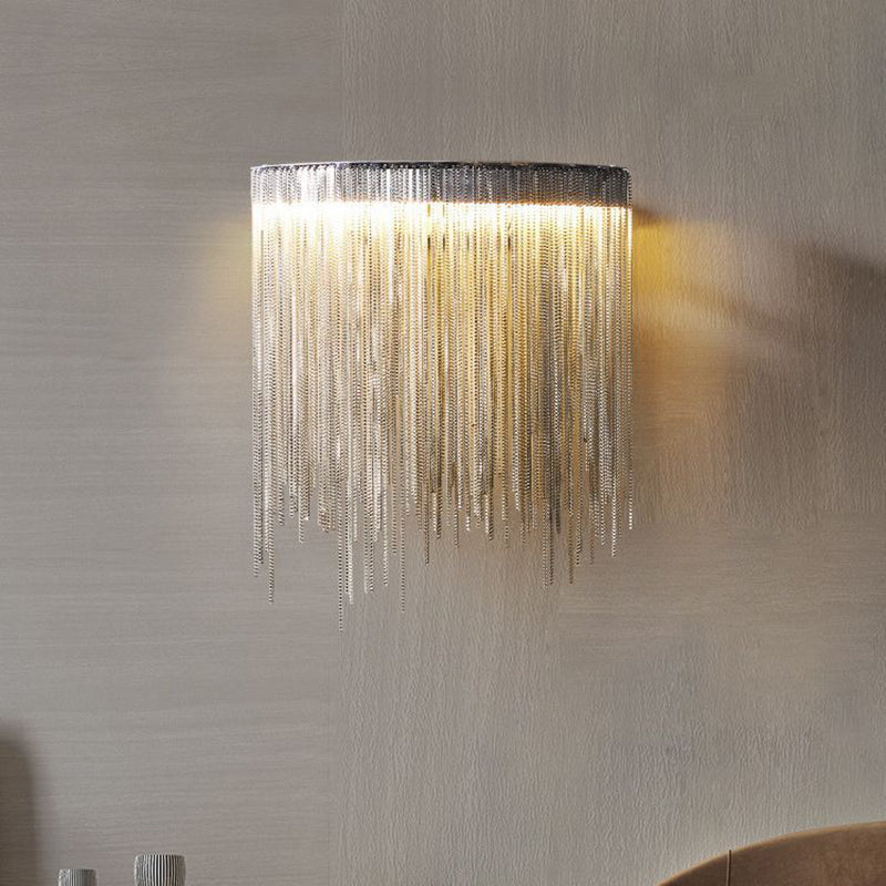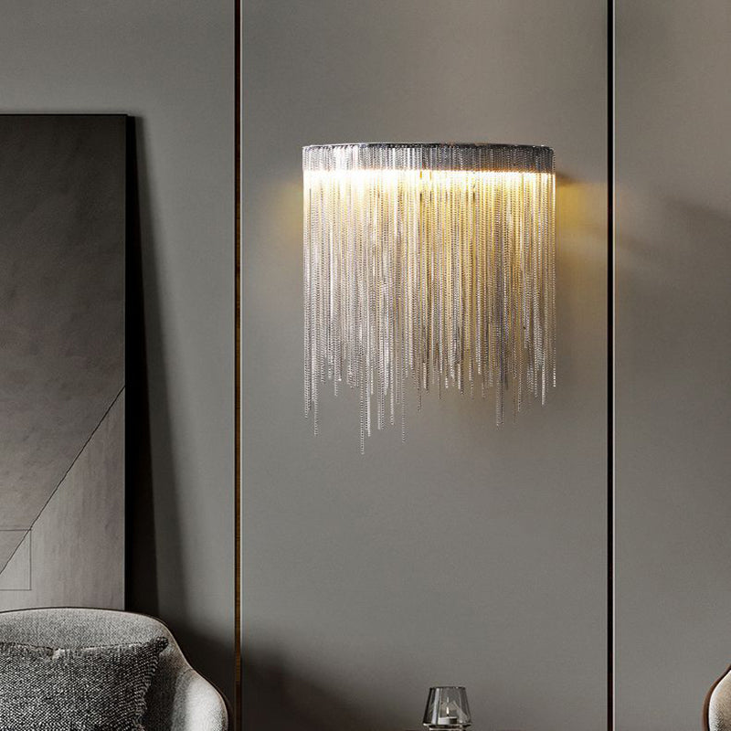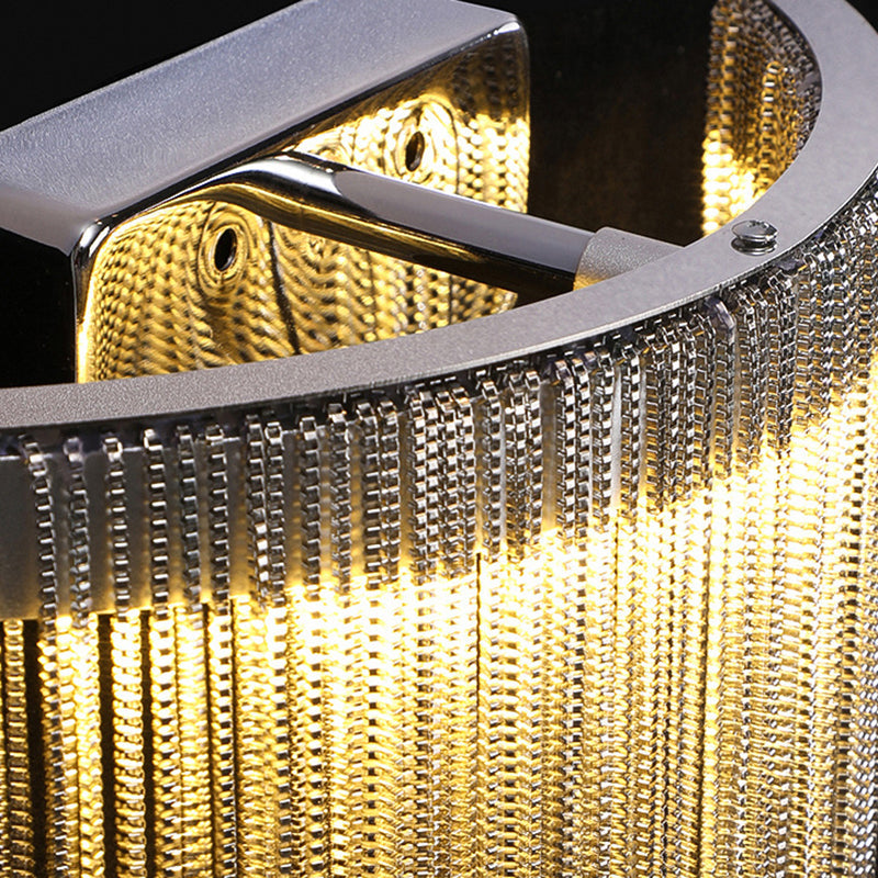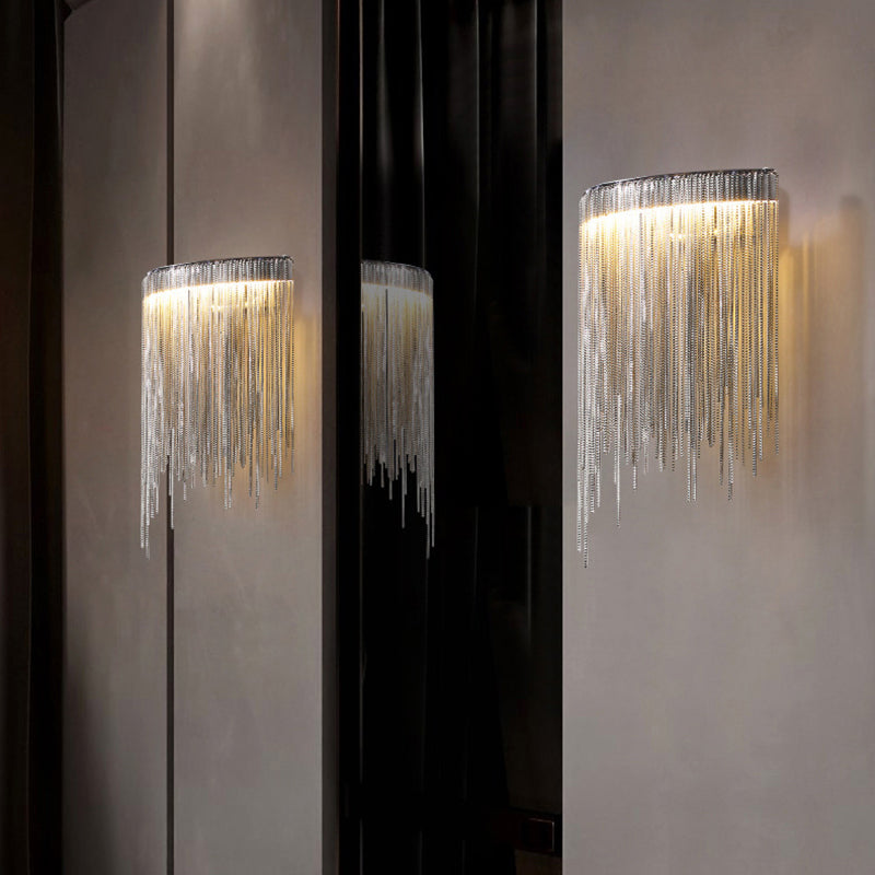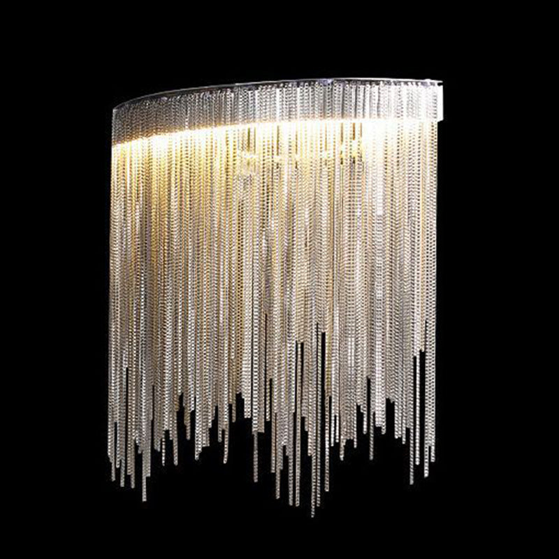 Contemporary Luxury Stainless Steel Aluminum Tassel Chain Arc LED Wall Sconce Lamp For Living Room