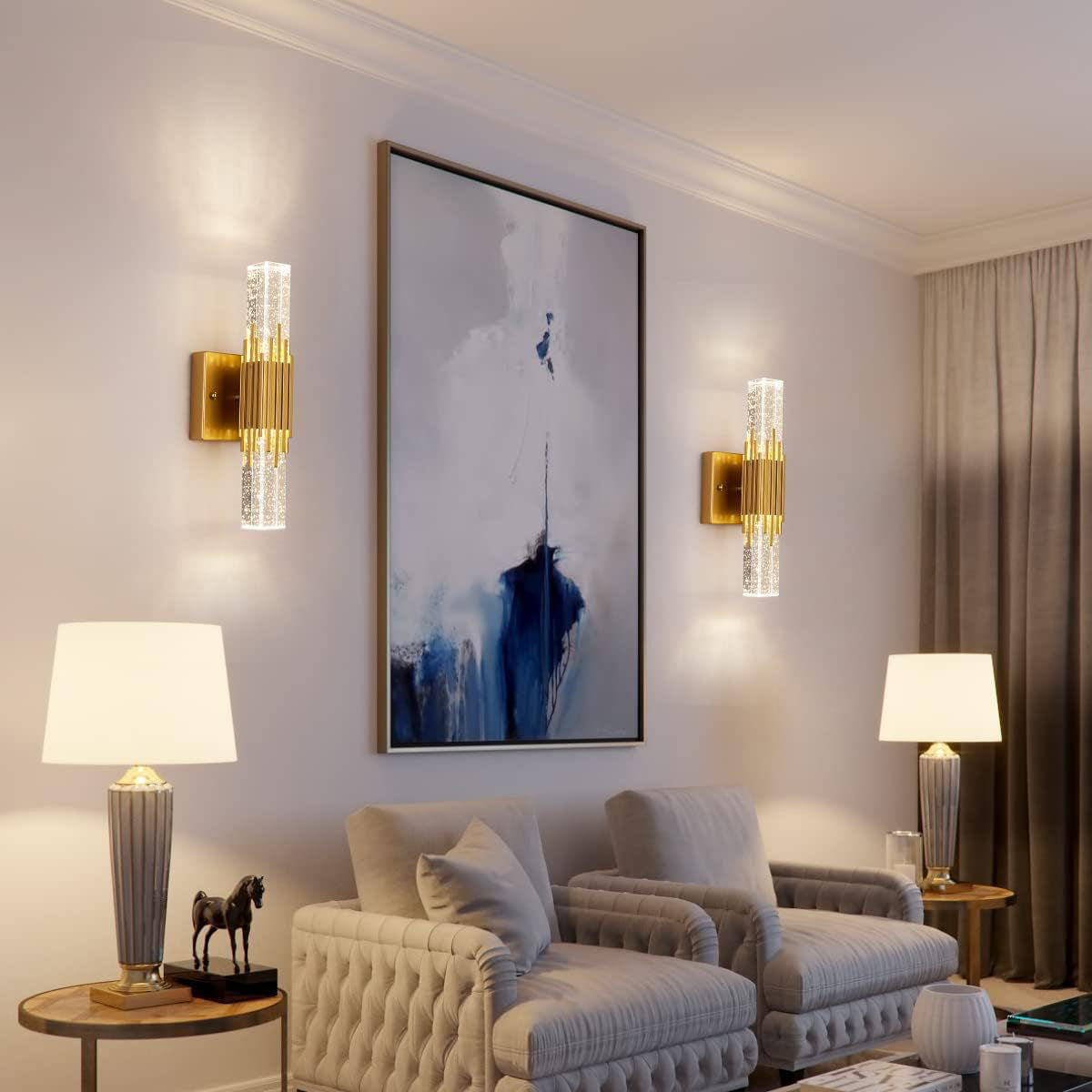 Contemporary Luxury Stainless Steel Column Crystal Shade LED Wall Sconce Lamp For Living Room