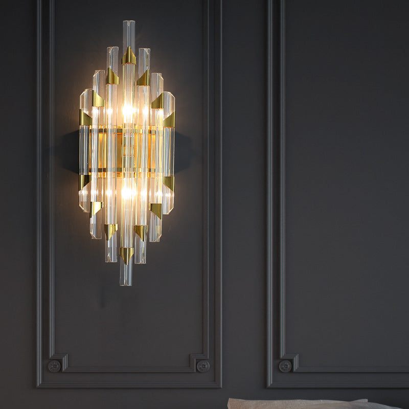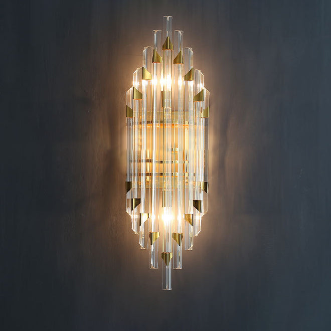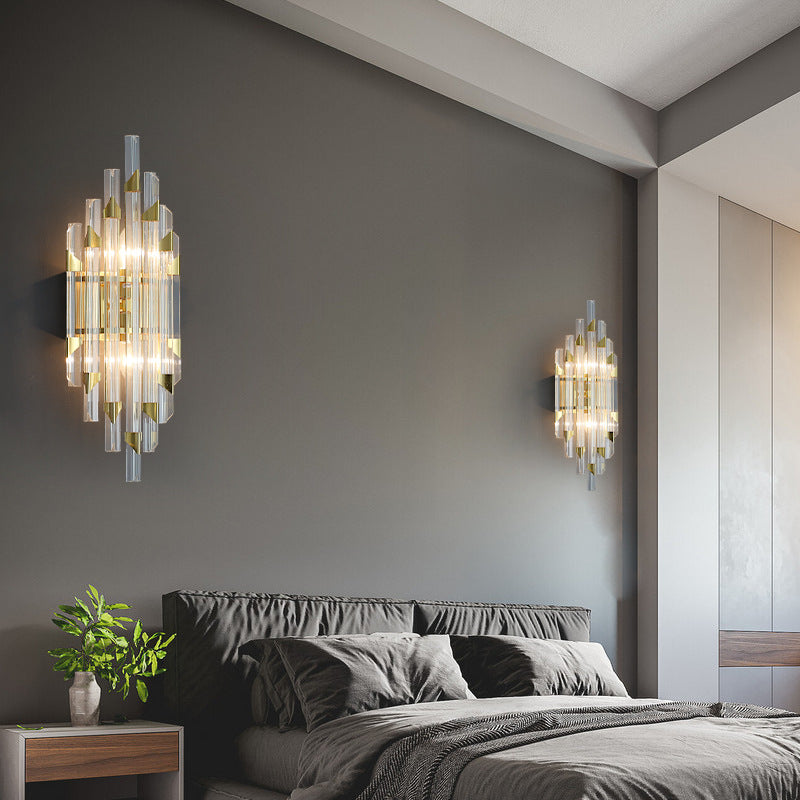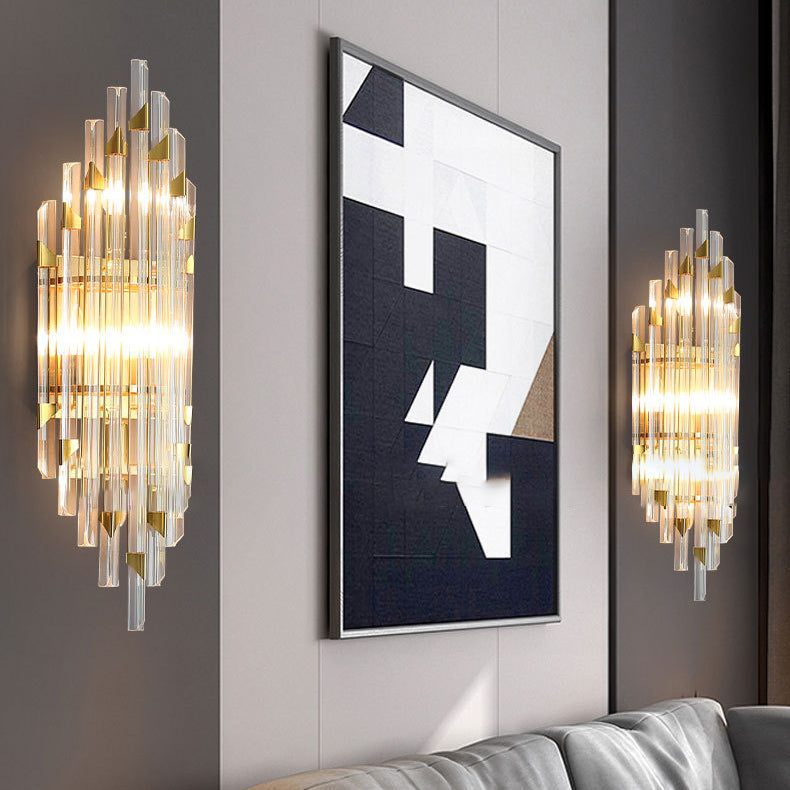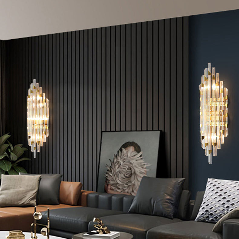 Contemporary Luxury Stripe Hardware Crystal 2/4 Light Wall Sconce Lamp For Living Room