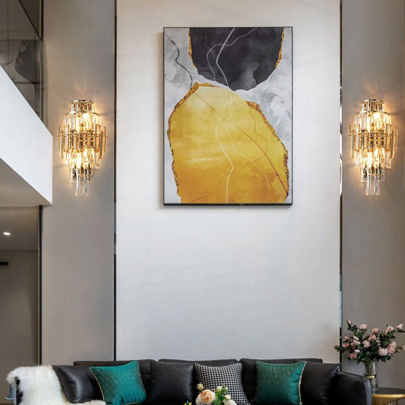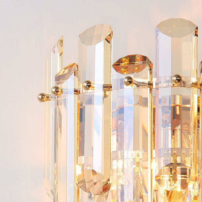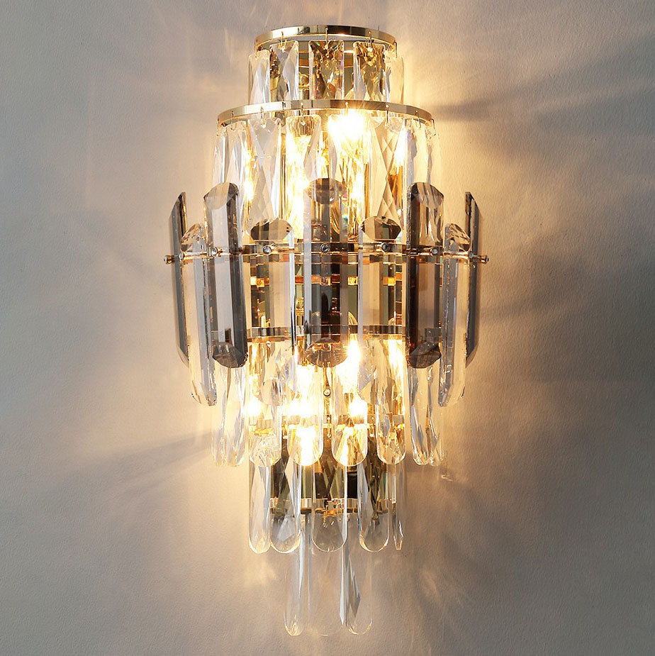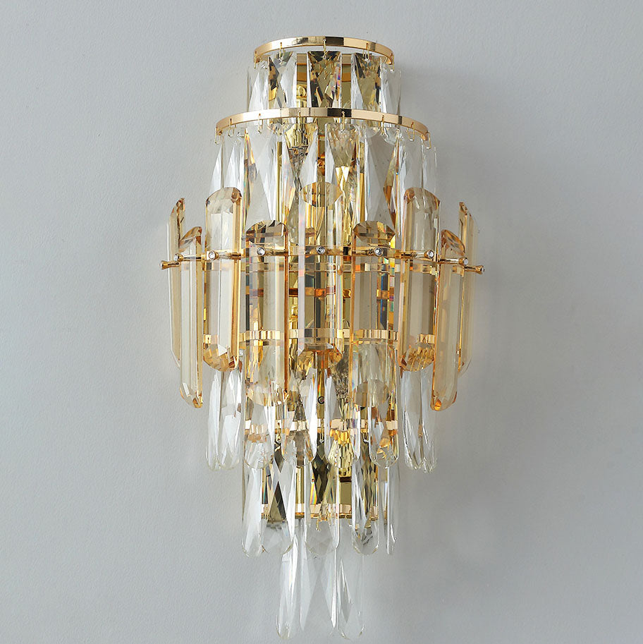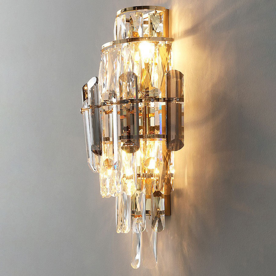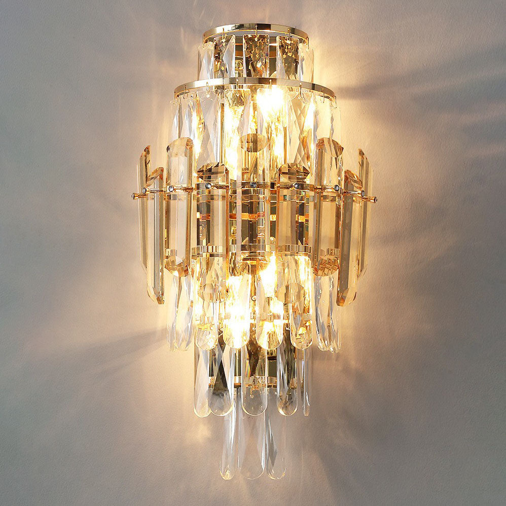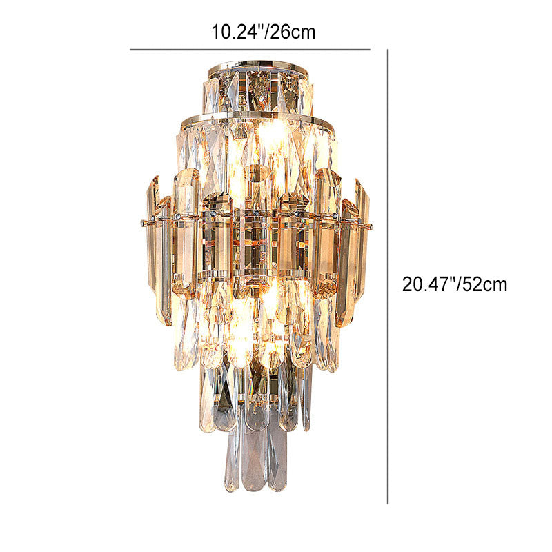 Contemporary Luxury Tiered Crystal Prismatic Dazzling Crystal 4-Light Wall Sconce Lamp For Living Room