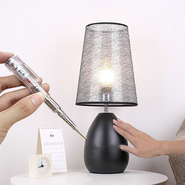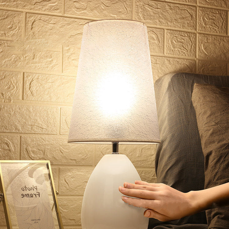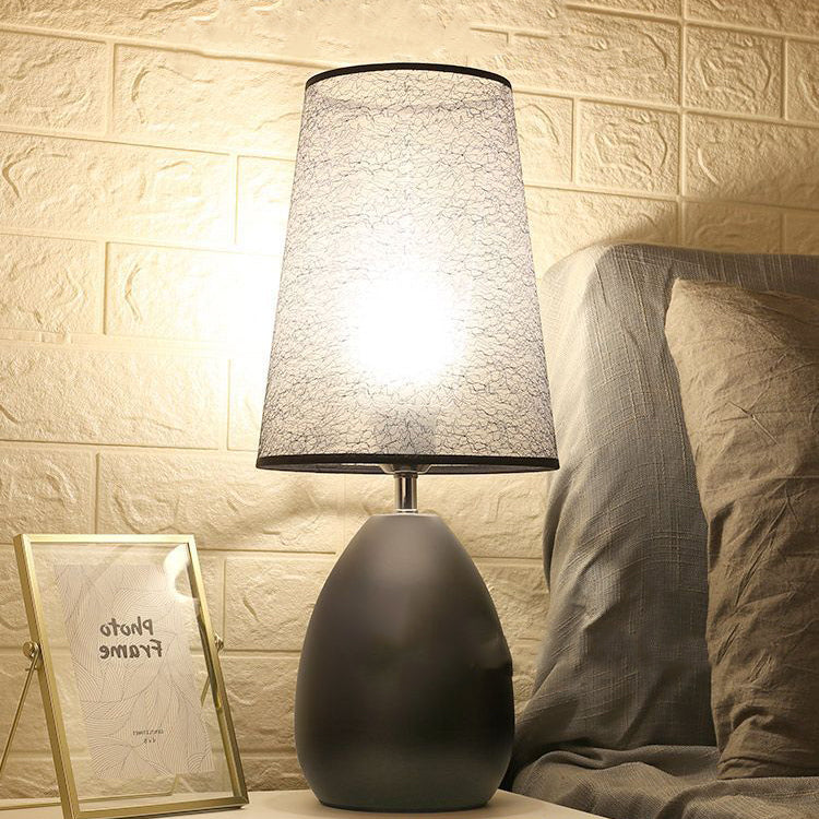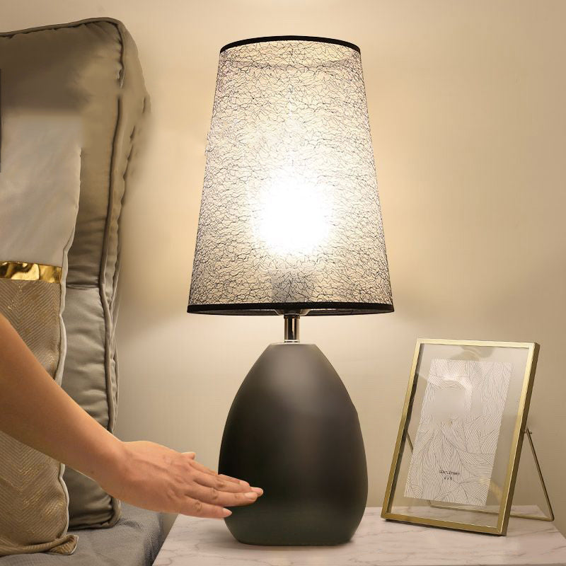 Contemporary Luxury Trapezoidal Crack Fabric Shade Iron 1-Light Table Lamp For Bedroom
