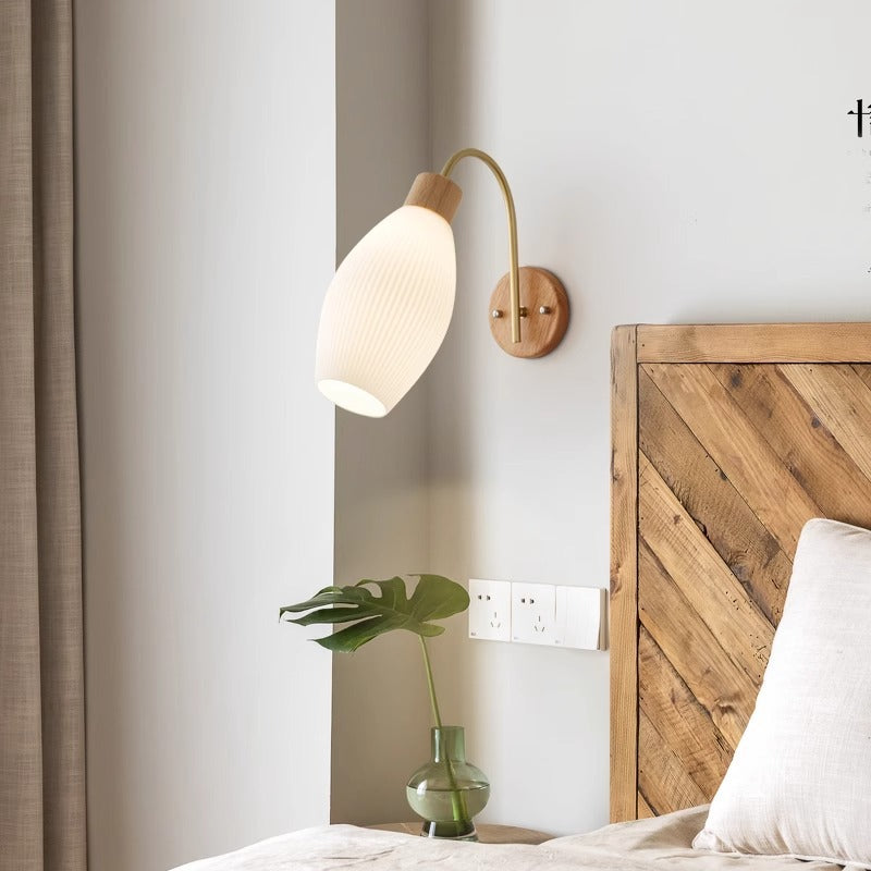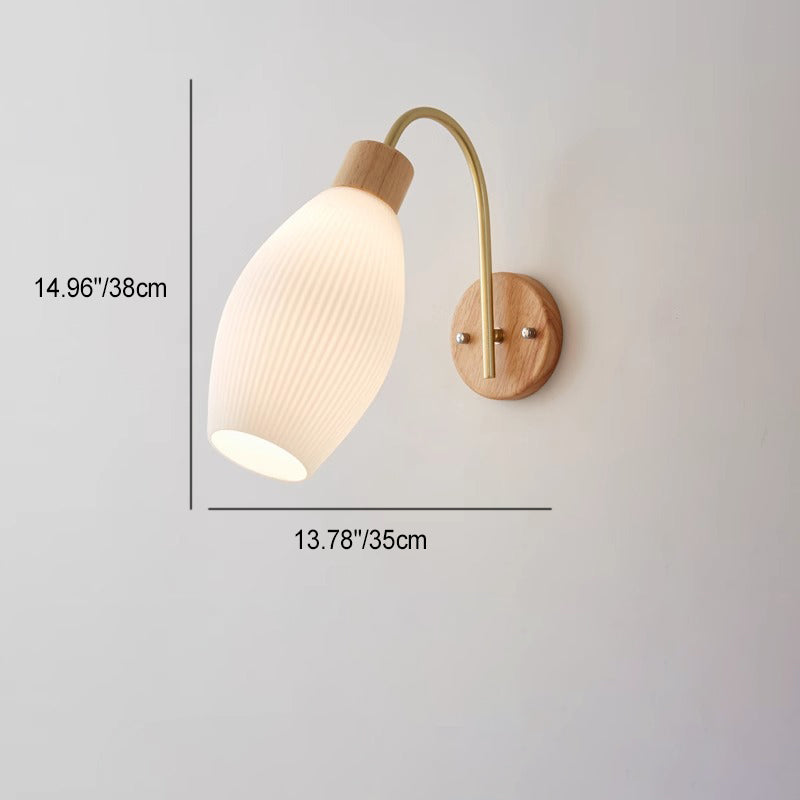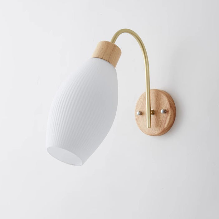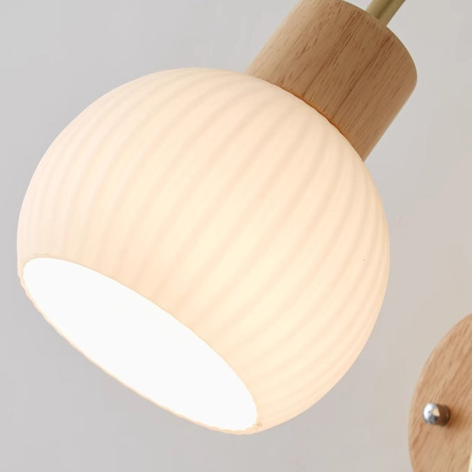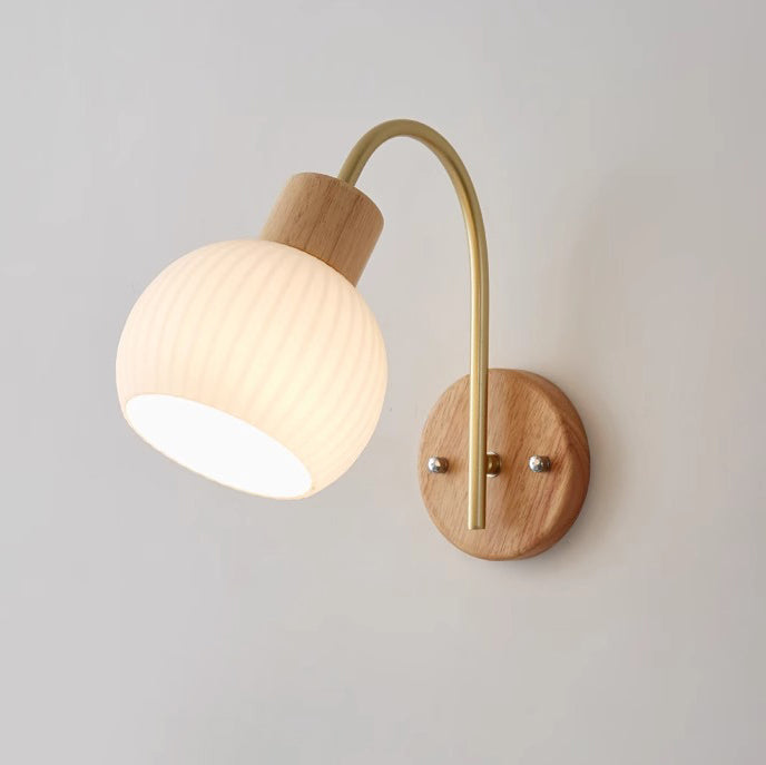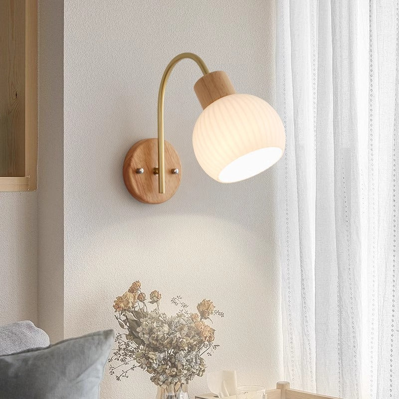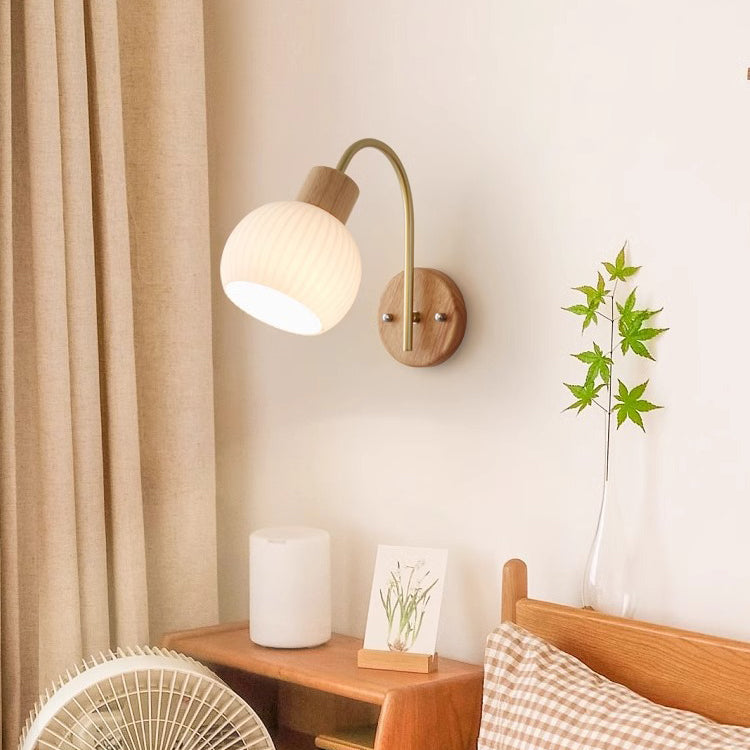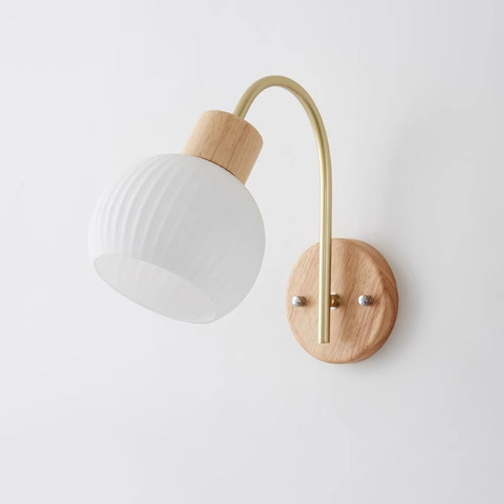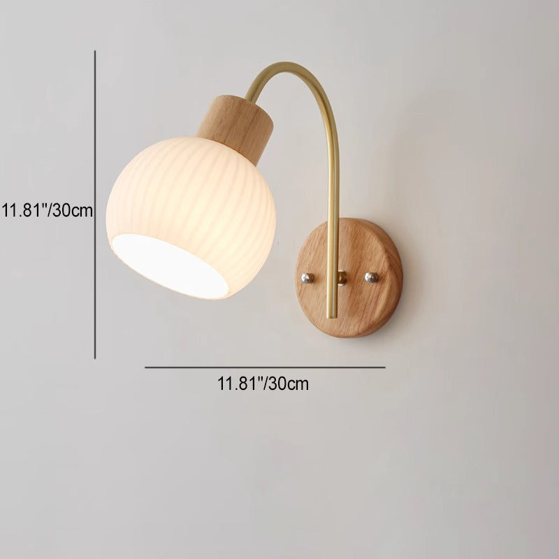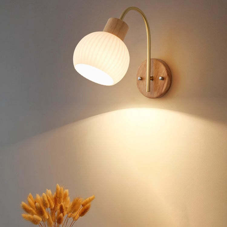 Contemporary Nordic Ball Stripe Acrylic Wood Iron 1-Light Wall Sconce Lamp For Bedroom