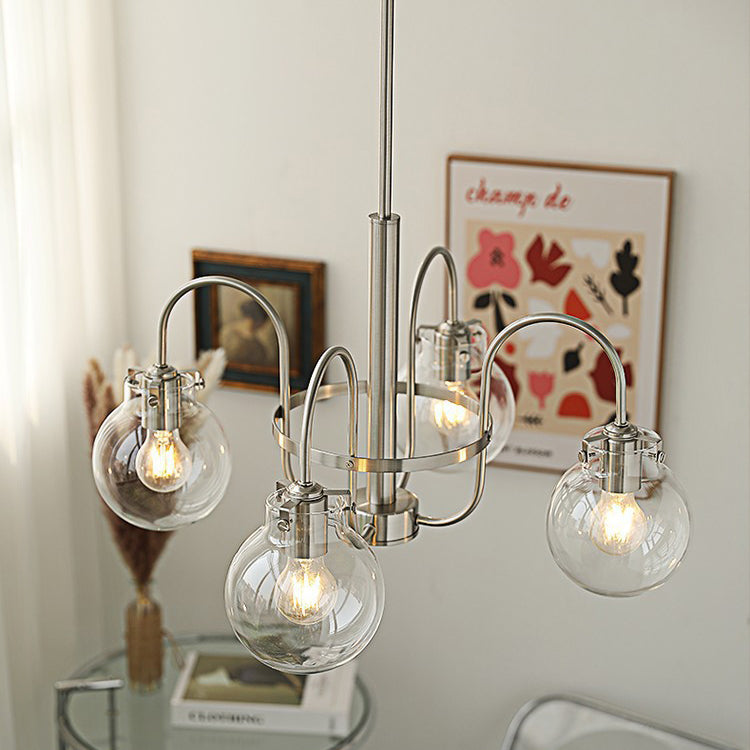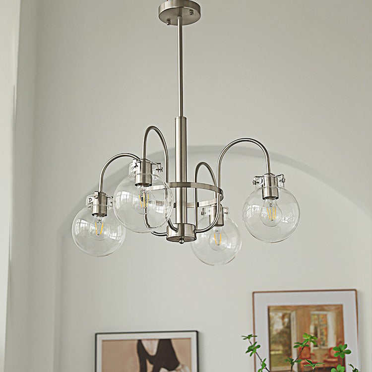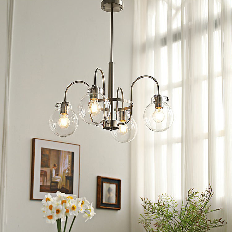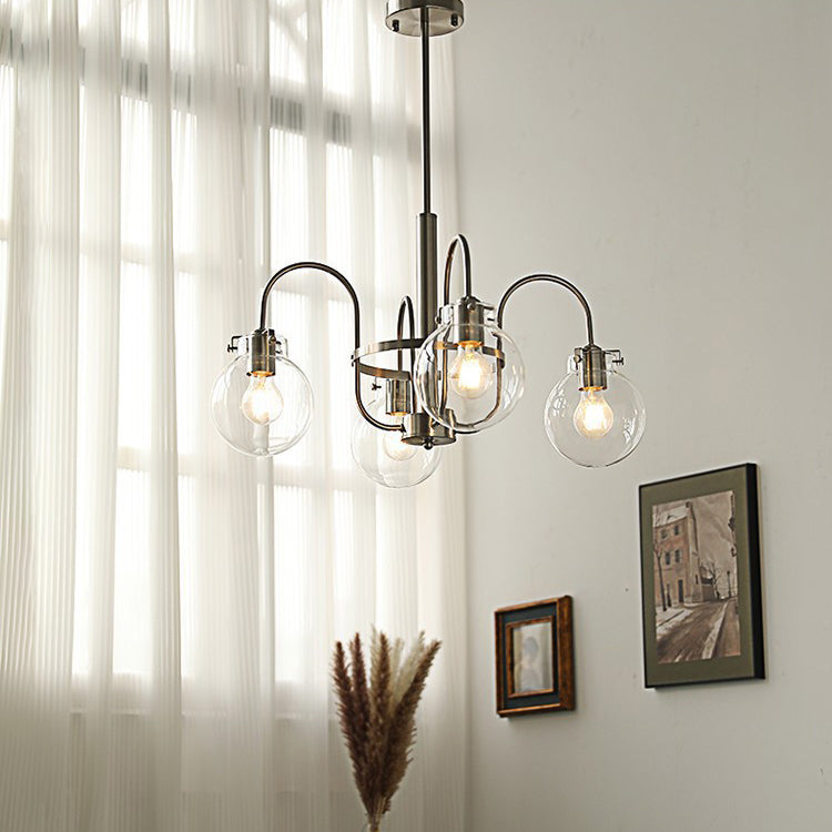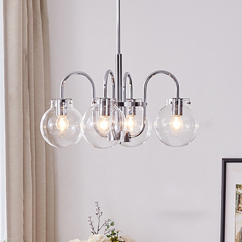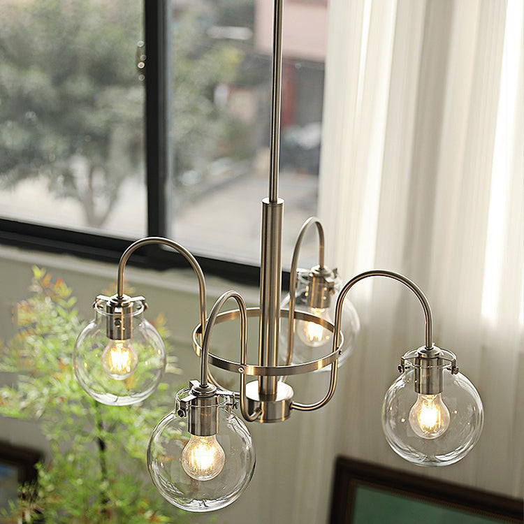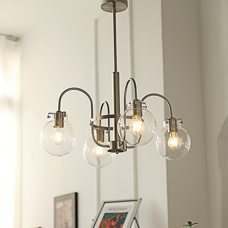 Contemporary Nordic Branch Curved Rod Round Globe Iron Glass 4/5 Light Chandelier For Living Room