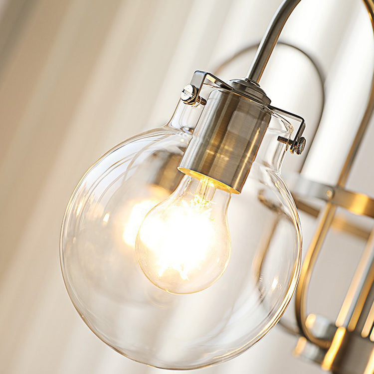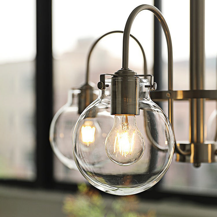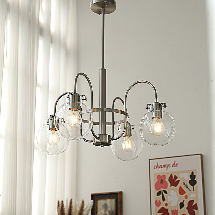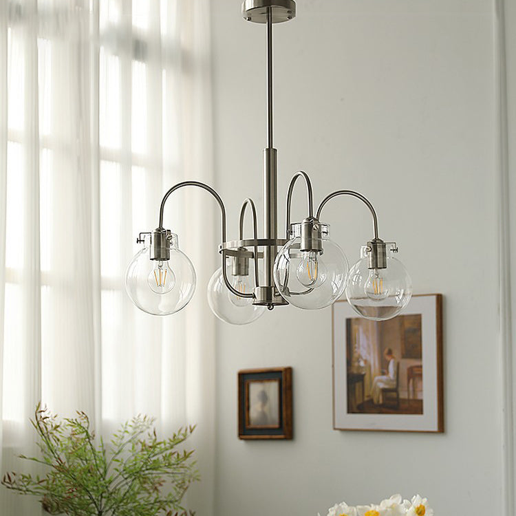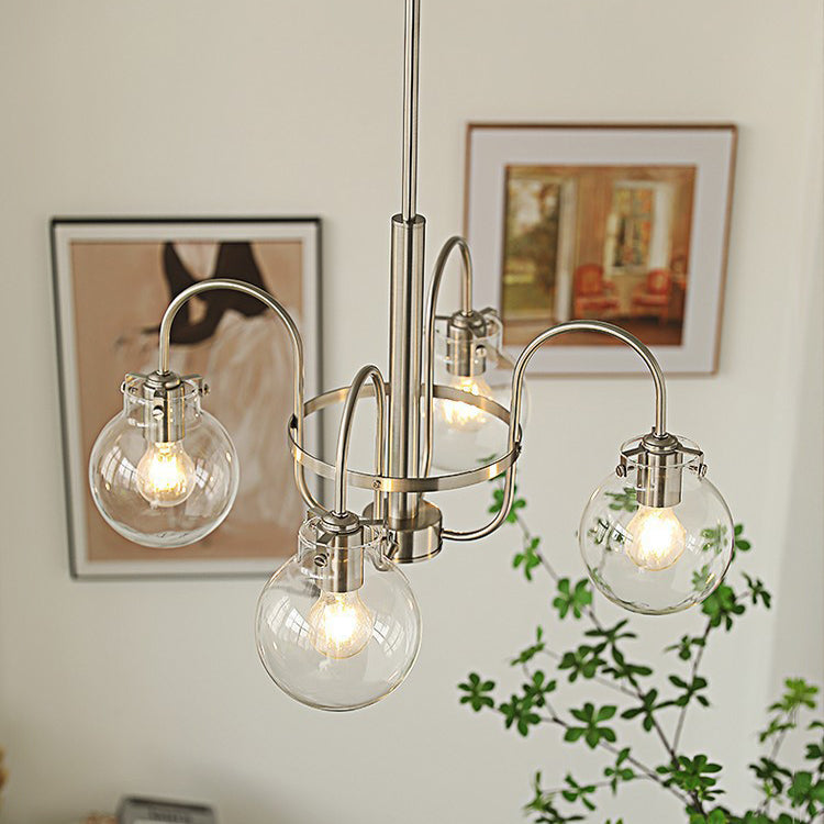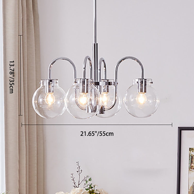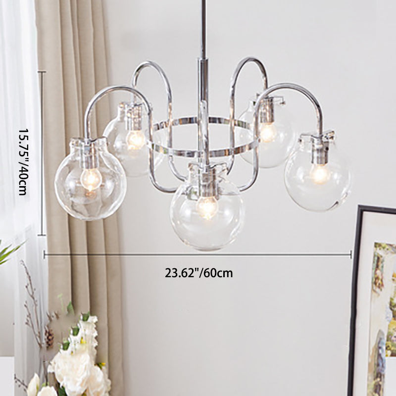 Contemporary Nordic Branch Curved Rod Round Globe Iron Glass 4/5 Light Chandelier For Living Room