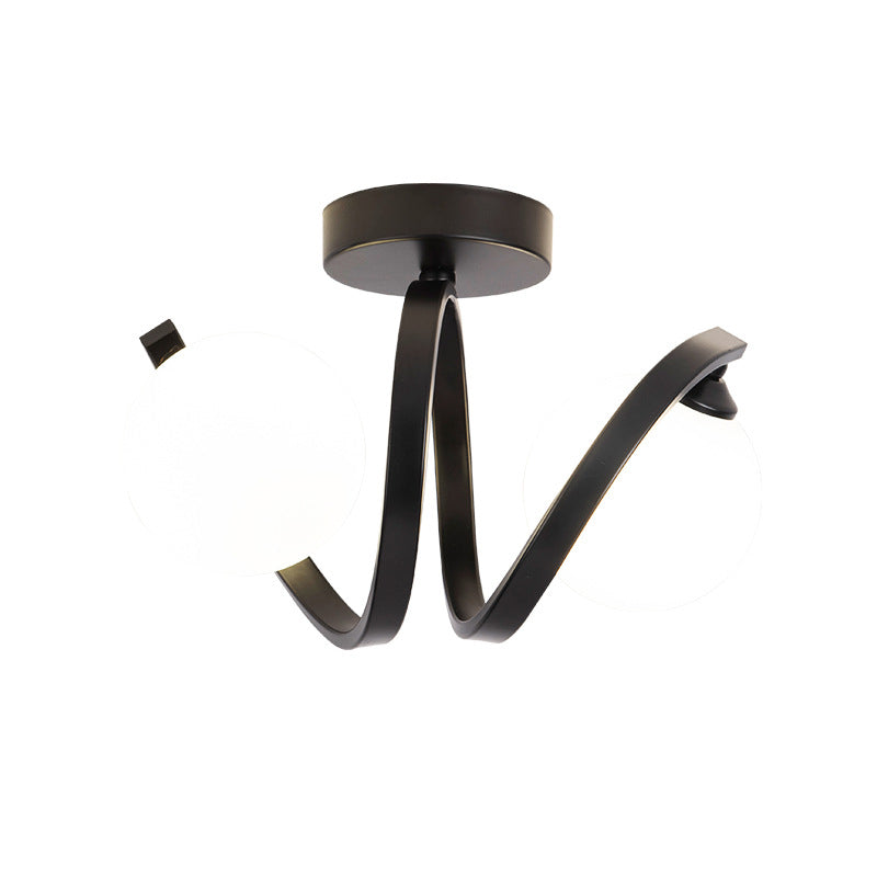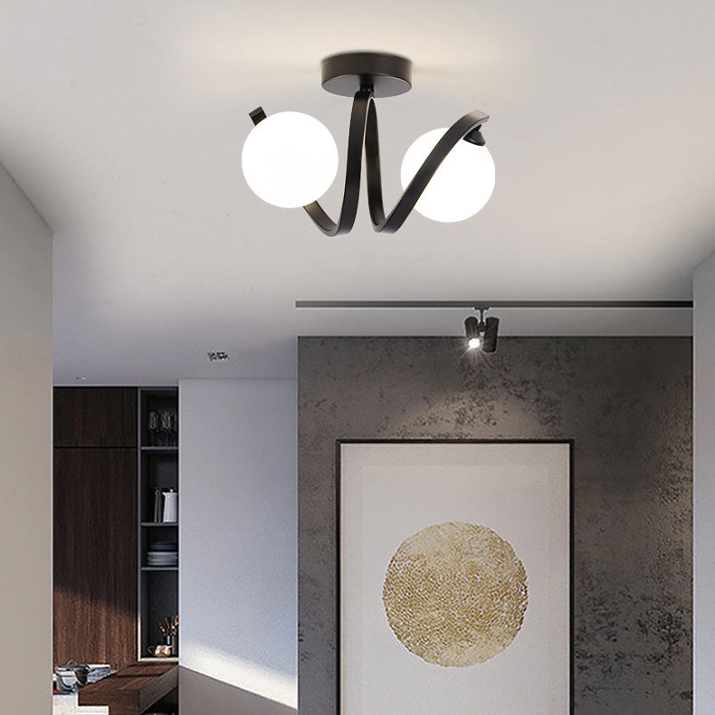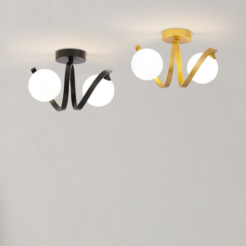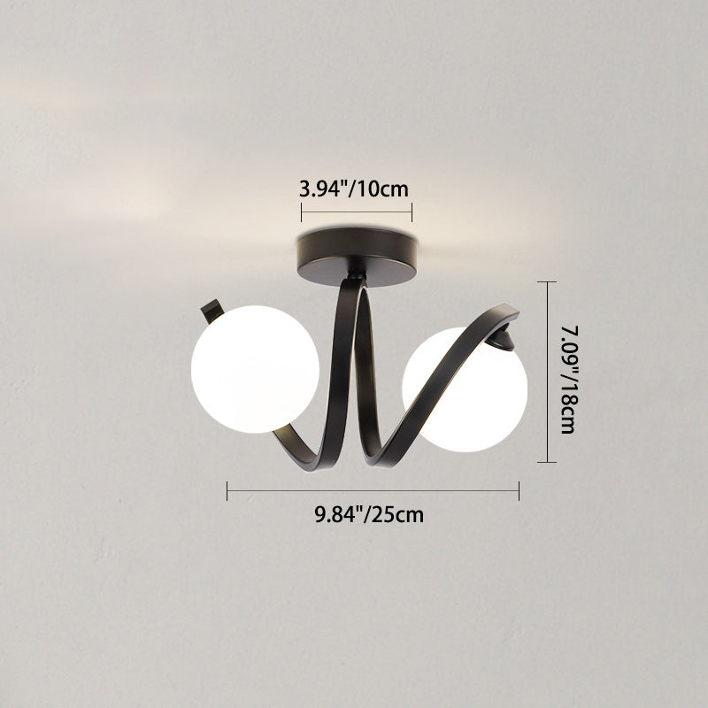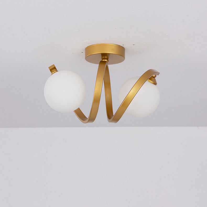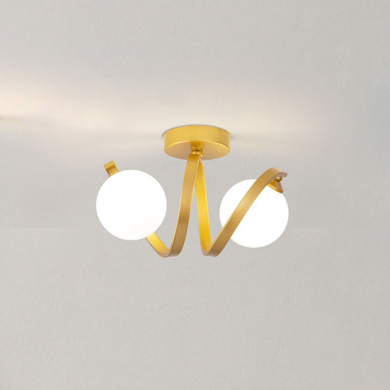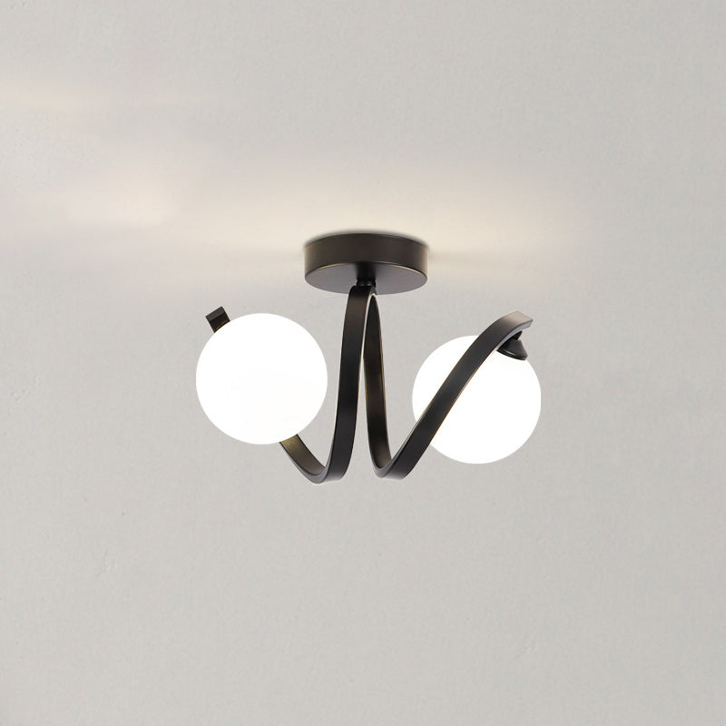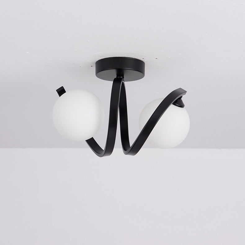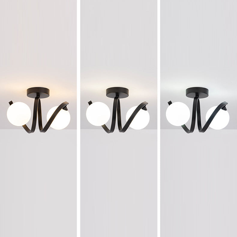 Contemporary Nordic Branch Orb Glass Iron 2-Light Semi-Flush Mount Ceiling Light For Bedroom
