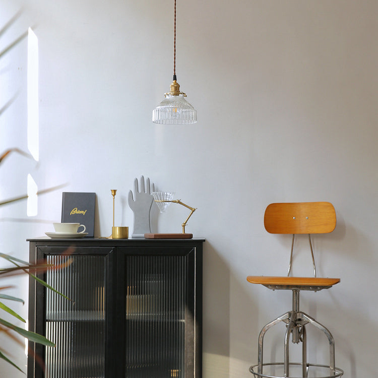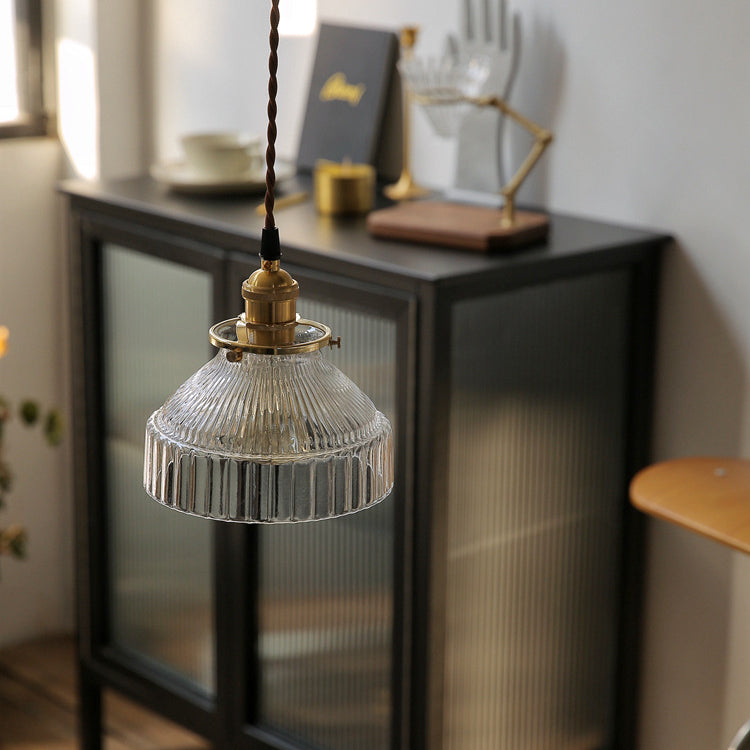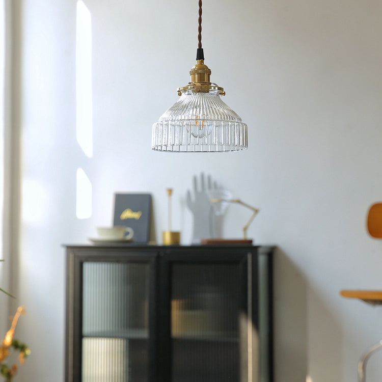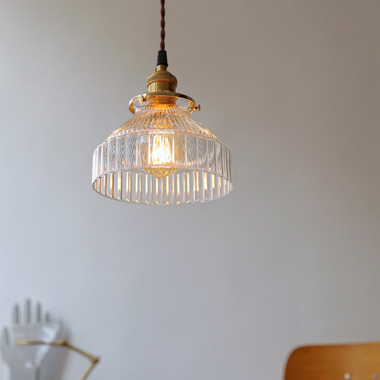 Contemporary Nordic Brass Glass Round Shape 1-Light Pendant Light For Living Room