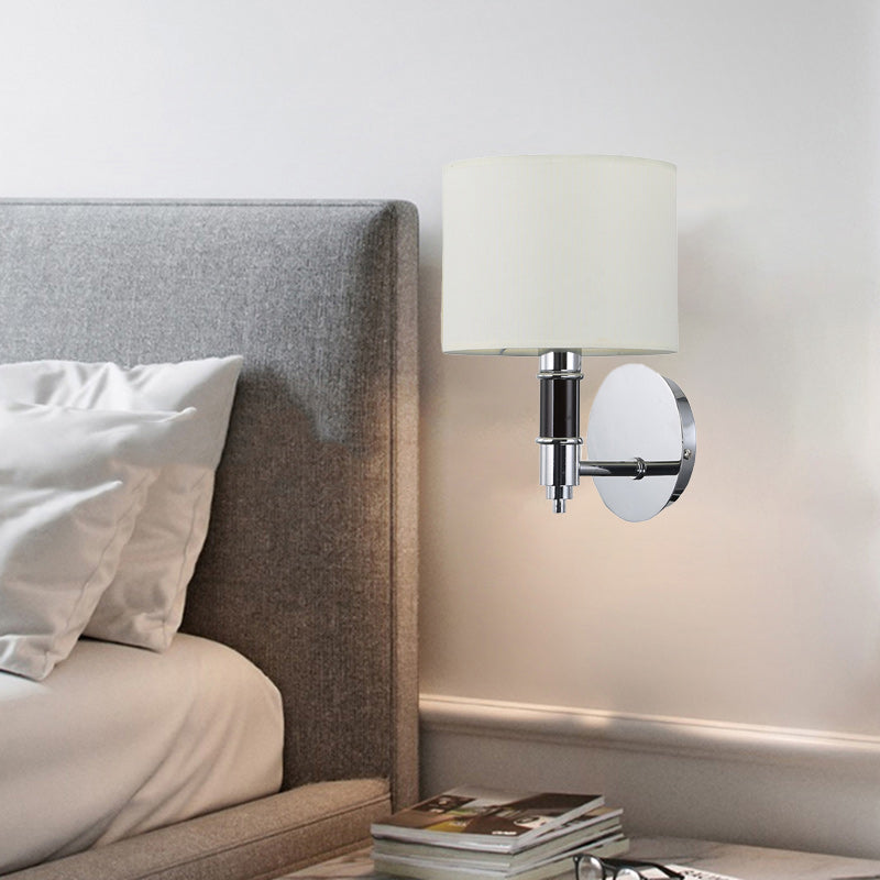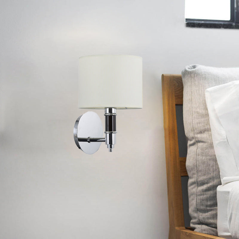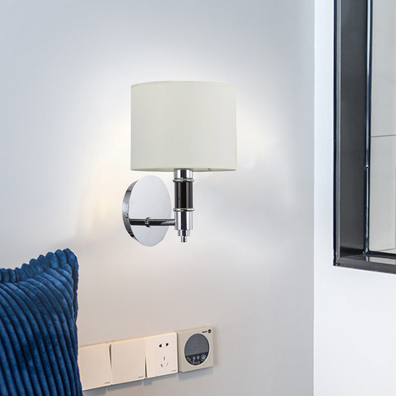 Contemporary Nordic Column Steel Fabric 1-Light Wall Sconce Lamp For Living Room