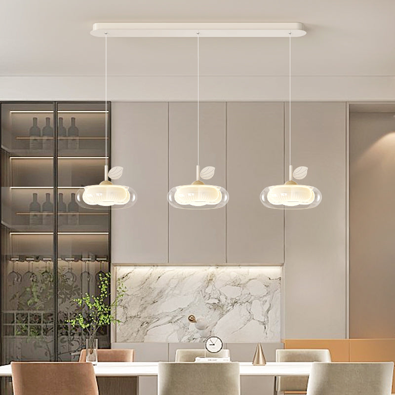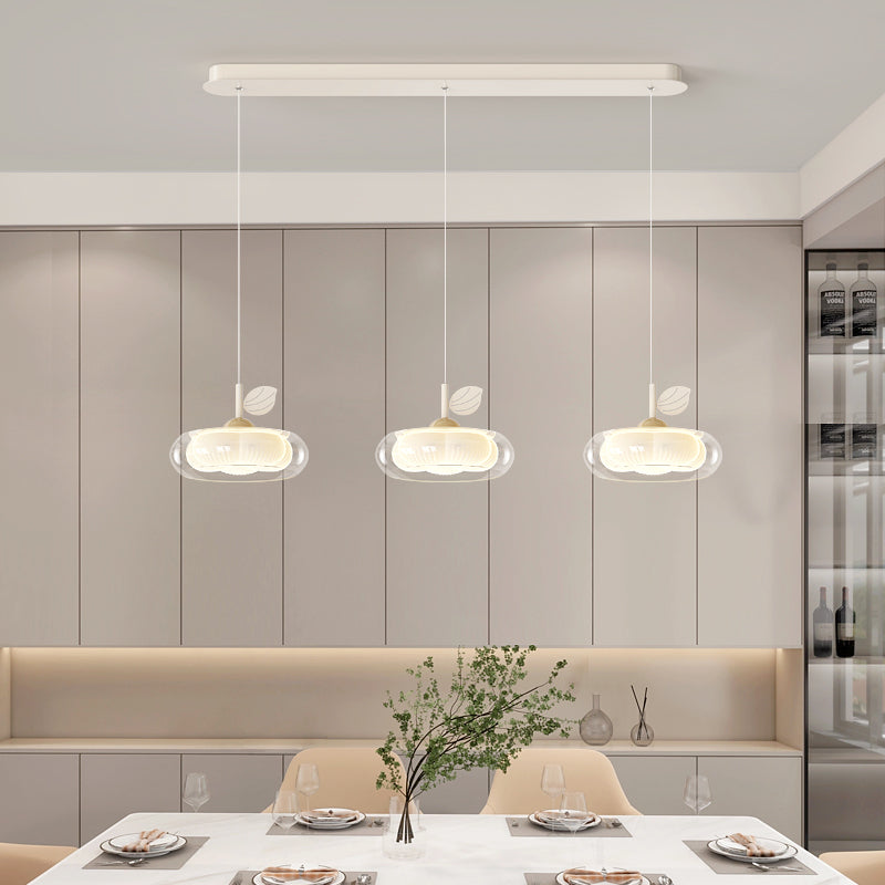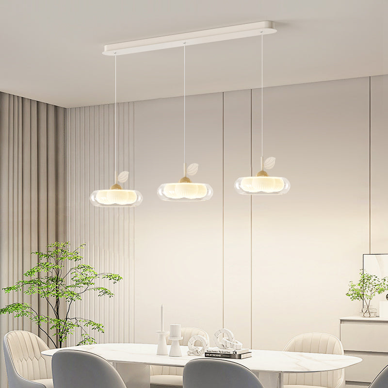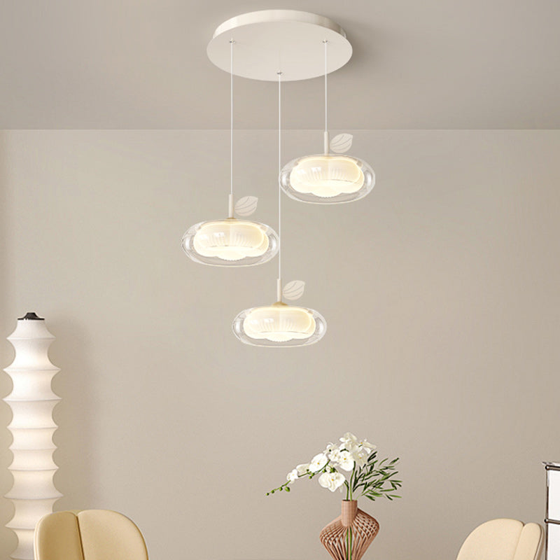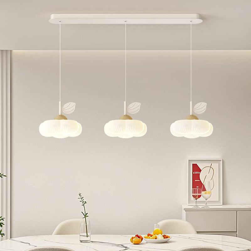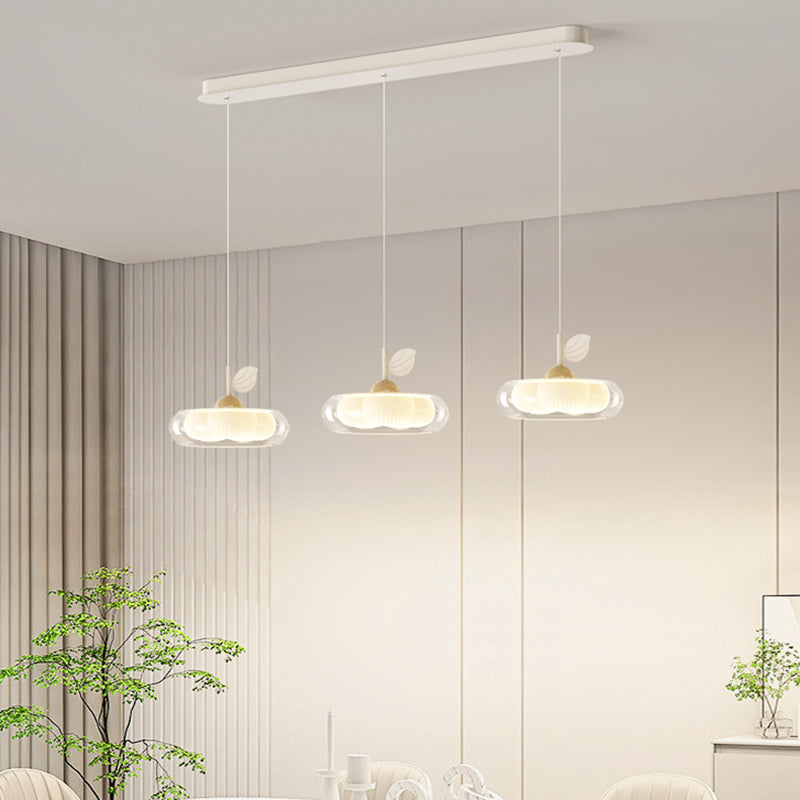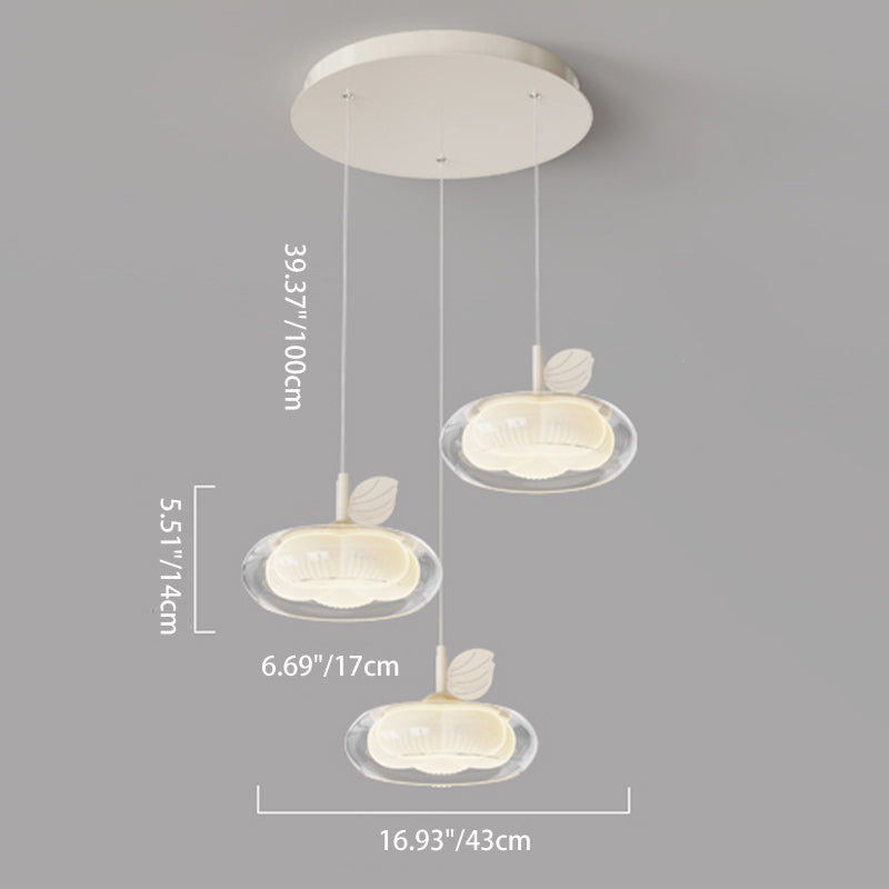 Contemporary Nordic Cream Flower Glass Lampshade Iron PE LED Chandelier For Dining Room