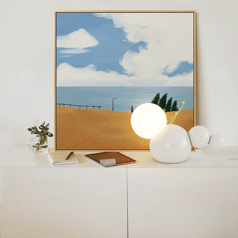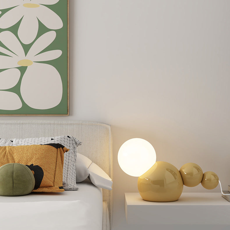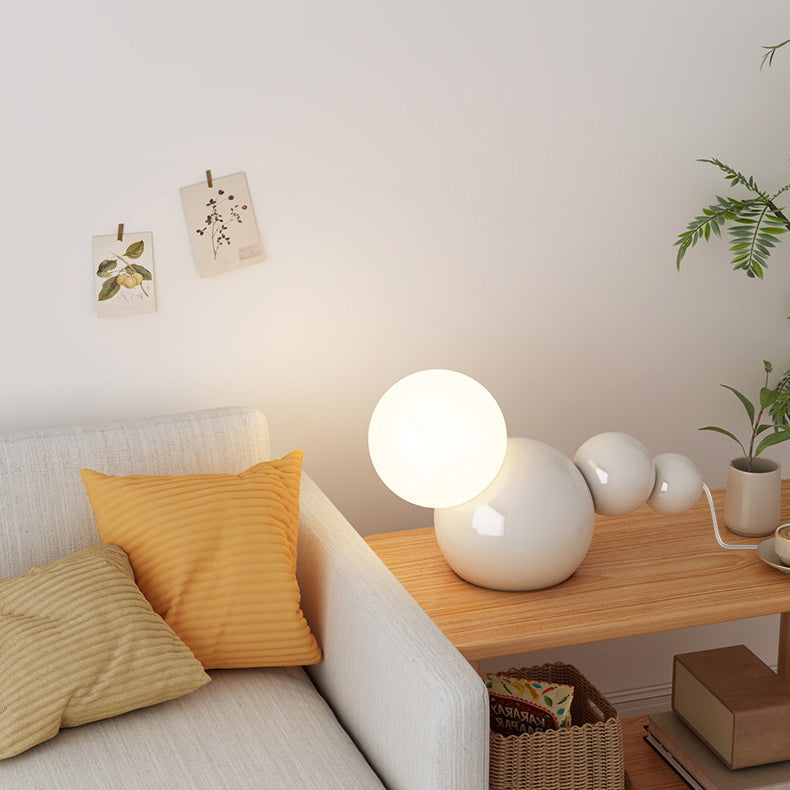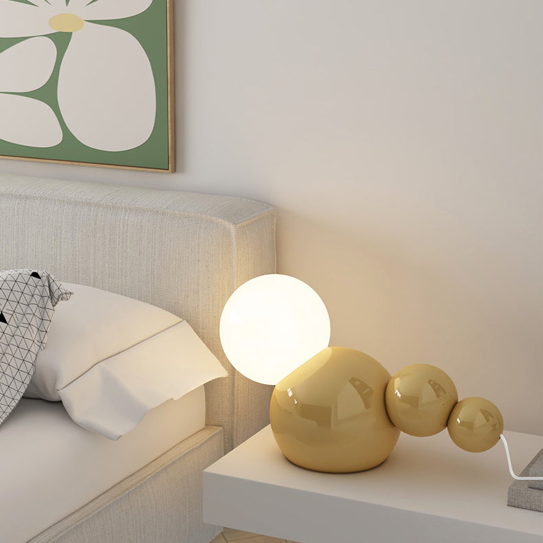 Contemporary Nordic Cream Geometric Iron Globe Ball Acrylic 1-Light Table Lamp For Home Office