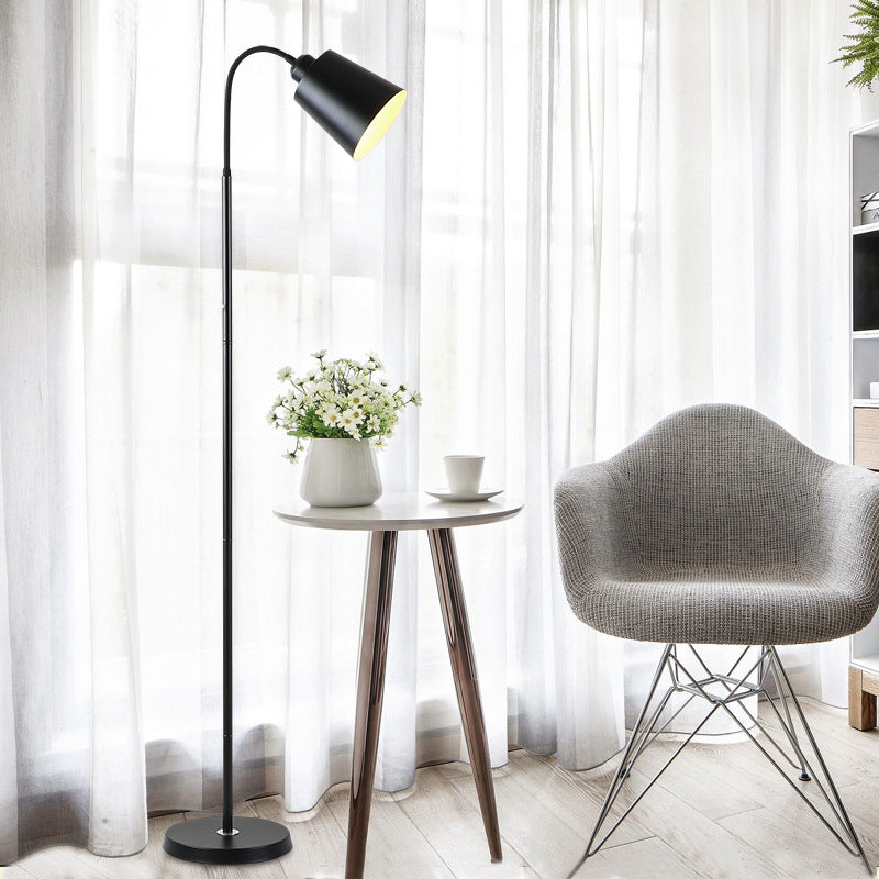 Contemporary Nordic Cylinder Iron Shade Arc Rod 1-Light Standing Floor Lamp For Living Room
