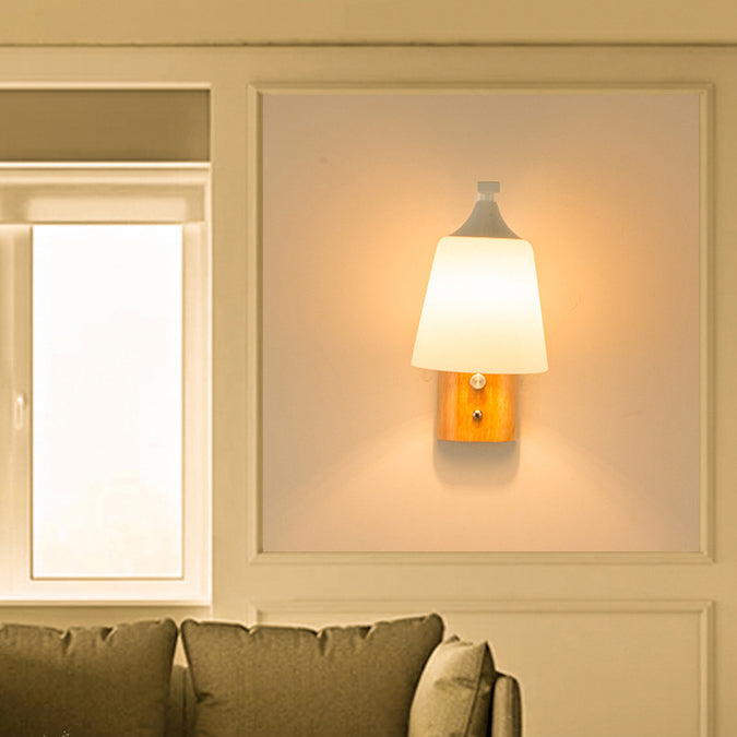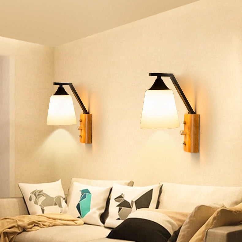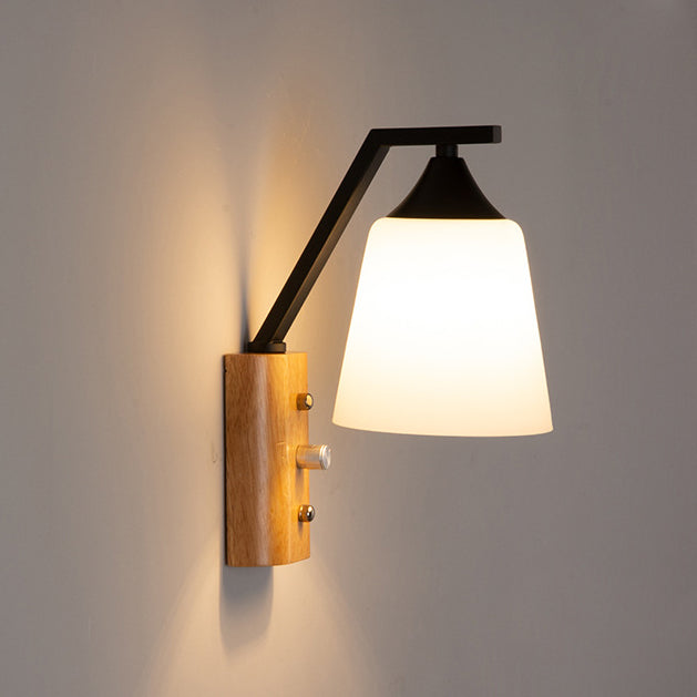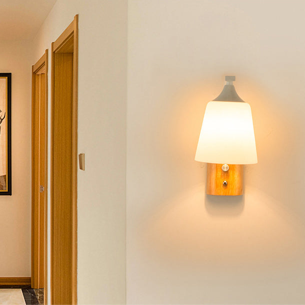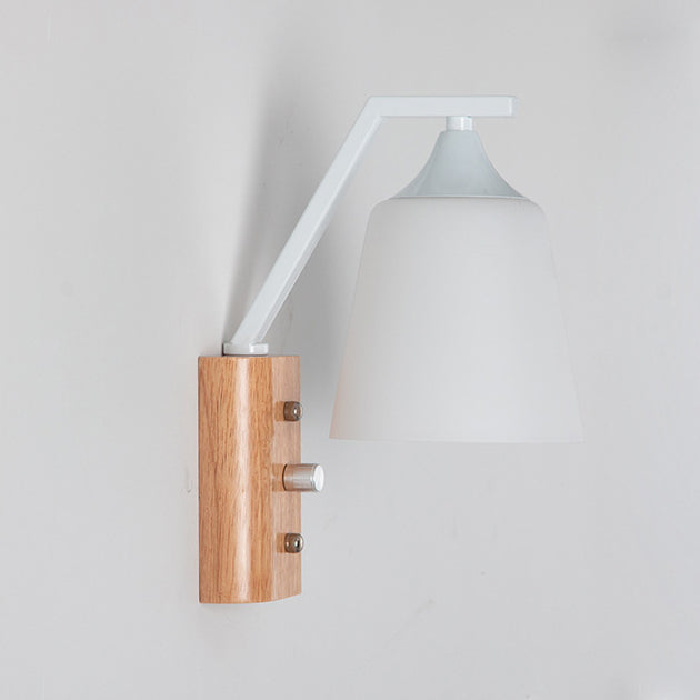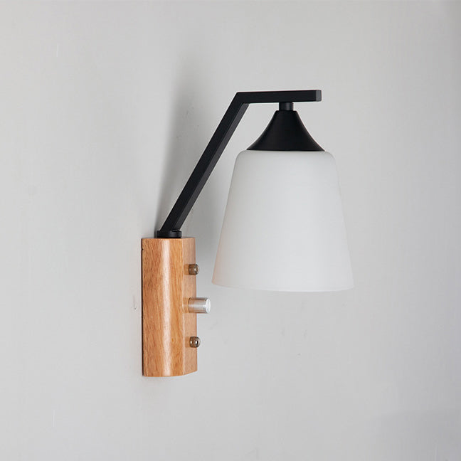 Contemporary Nordic Cylindrical Round Wood Iron Frame Glass 1-Light For Living Room