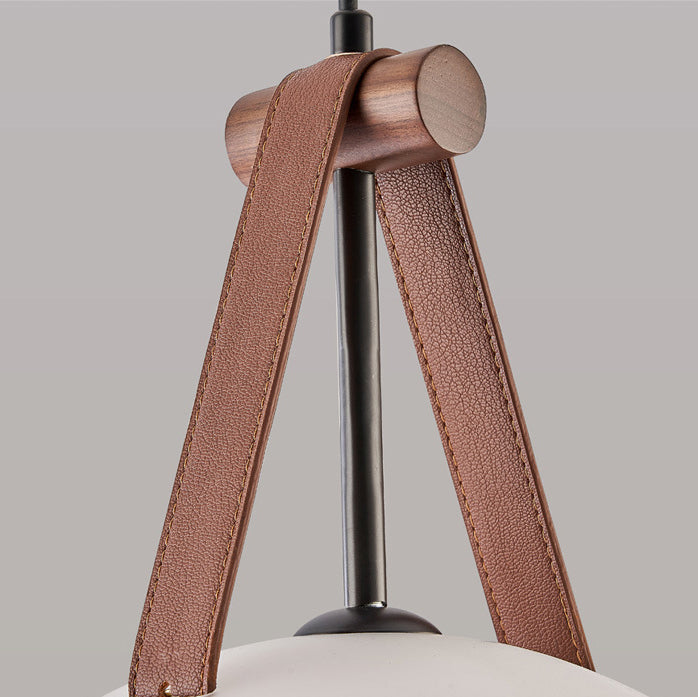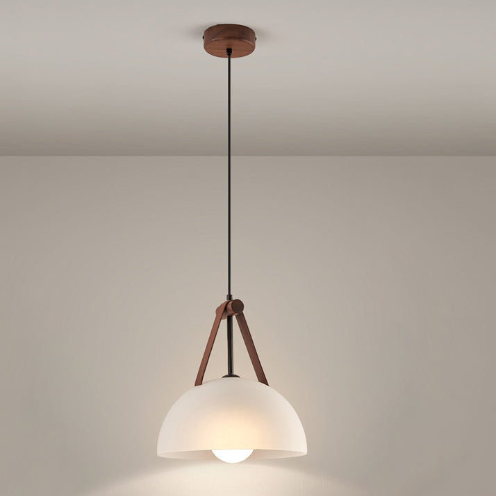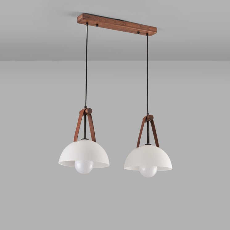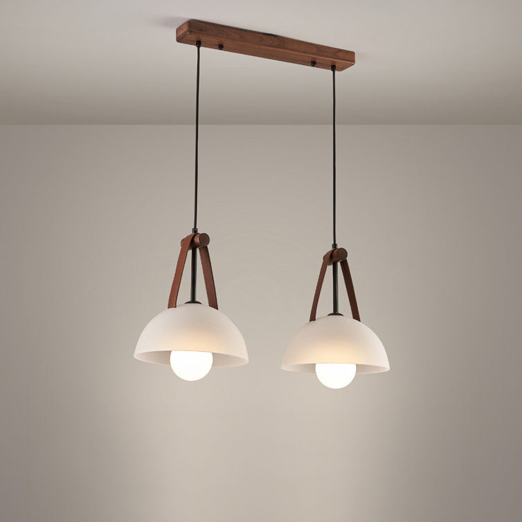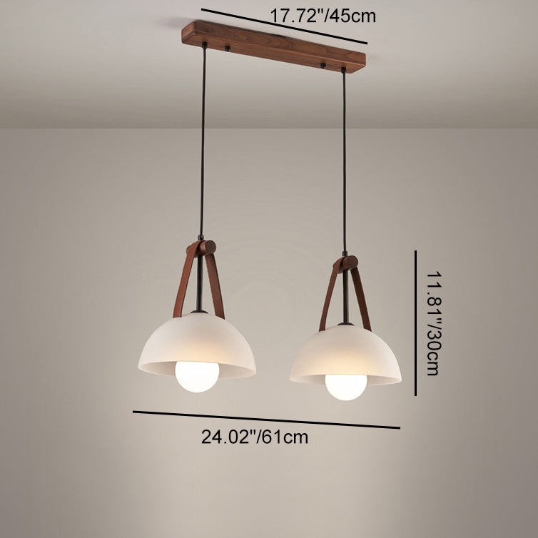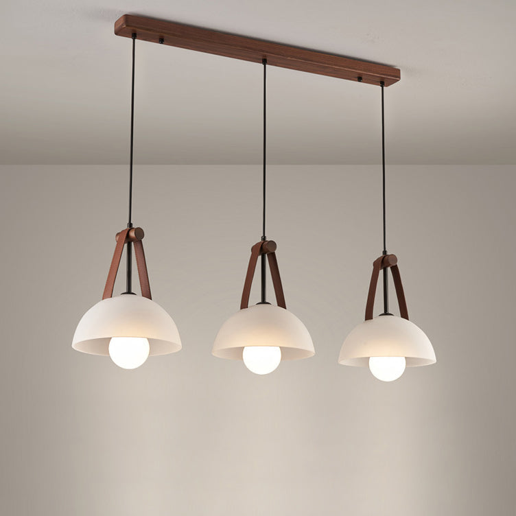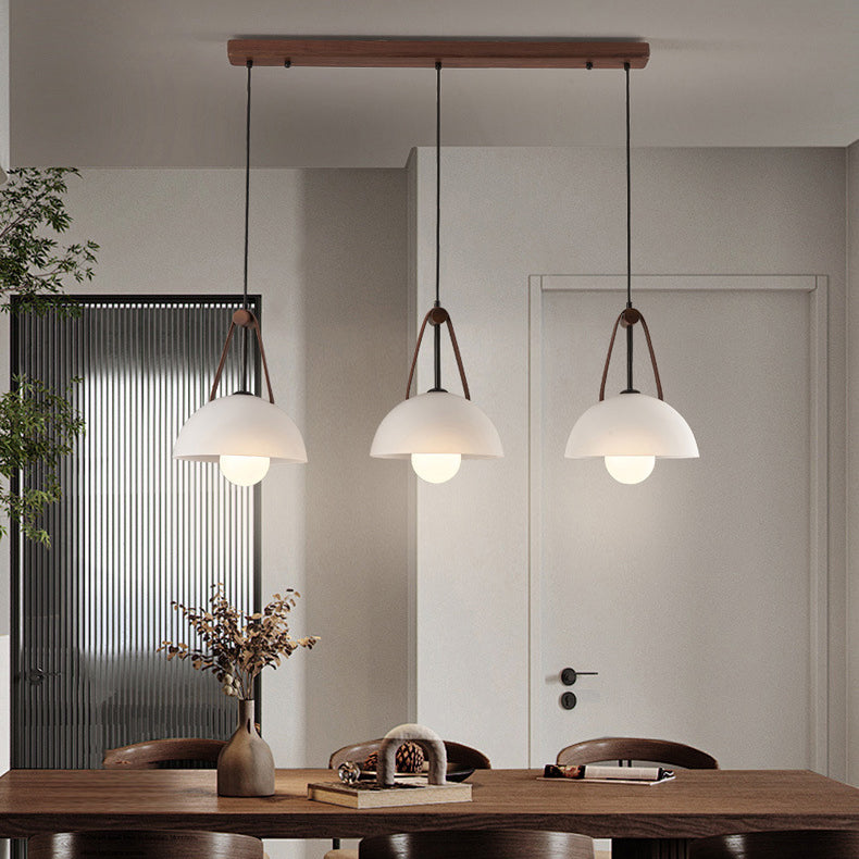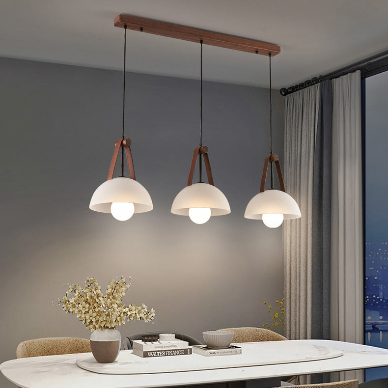 Contemporary Nordic Dome Semicircle Glass Lampshade Walnut Copper Leather 1/2/3 - Light Chandelier For Dining Room