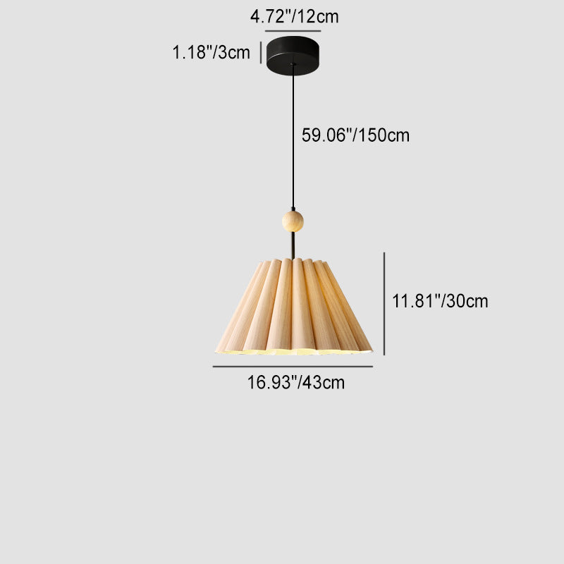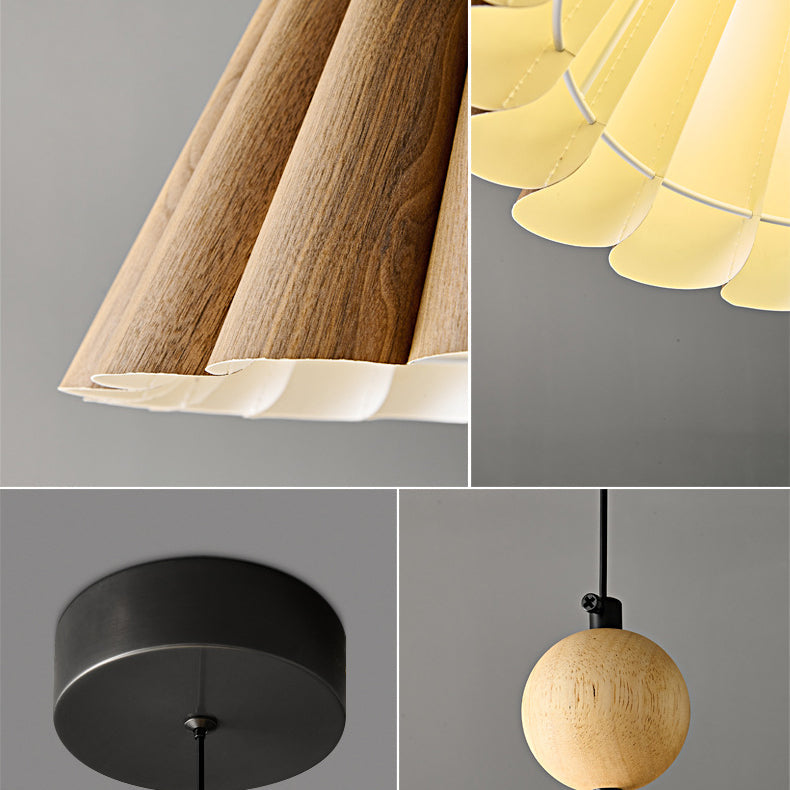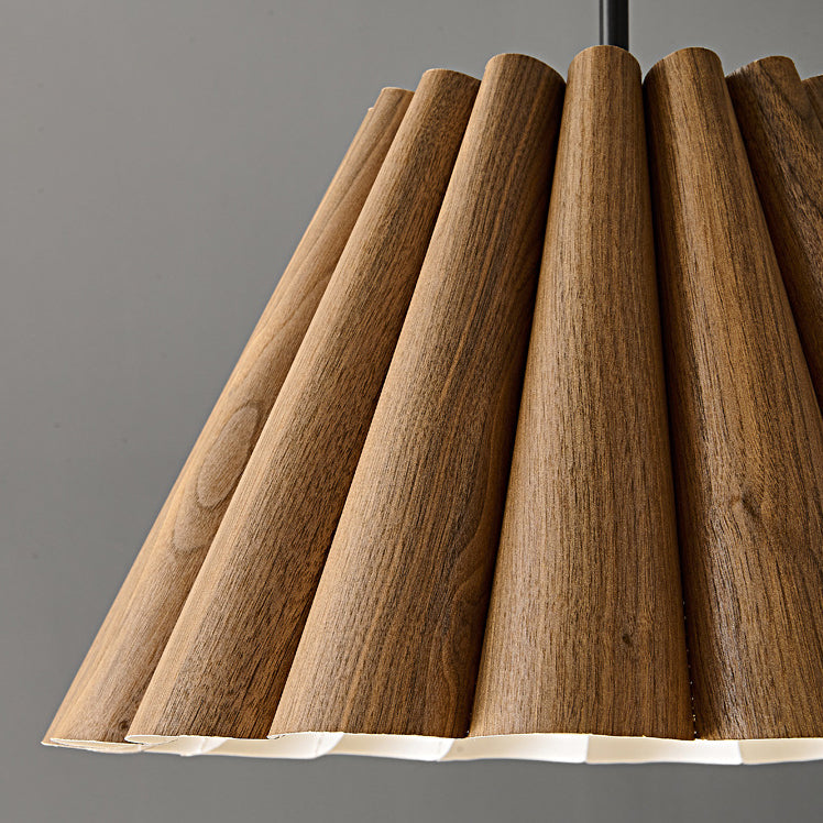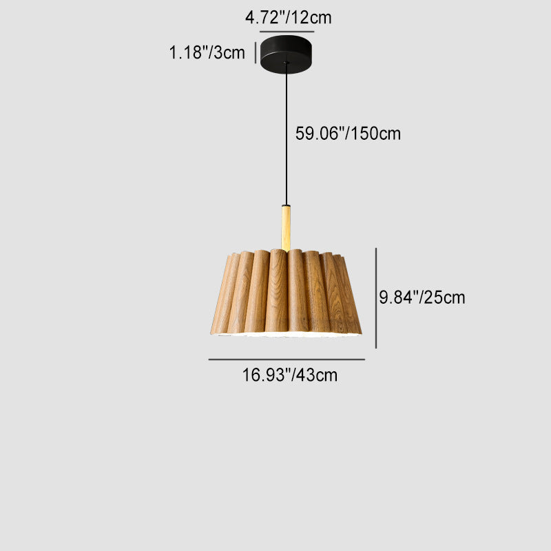 Contemporary Nordic Drum Copper Wood Leather 1-Light Pendant Light For Living Room