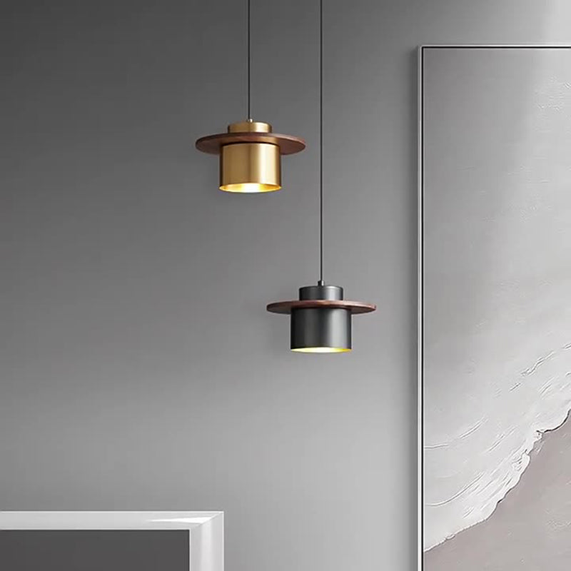 Contemporary Nordic Full Copper Cylinder Walnut Wood LED Pendant Light For Bedroom
