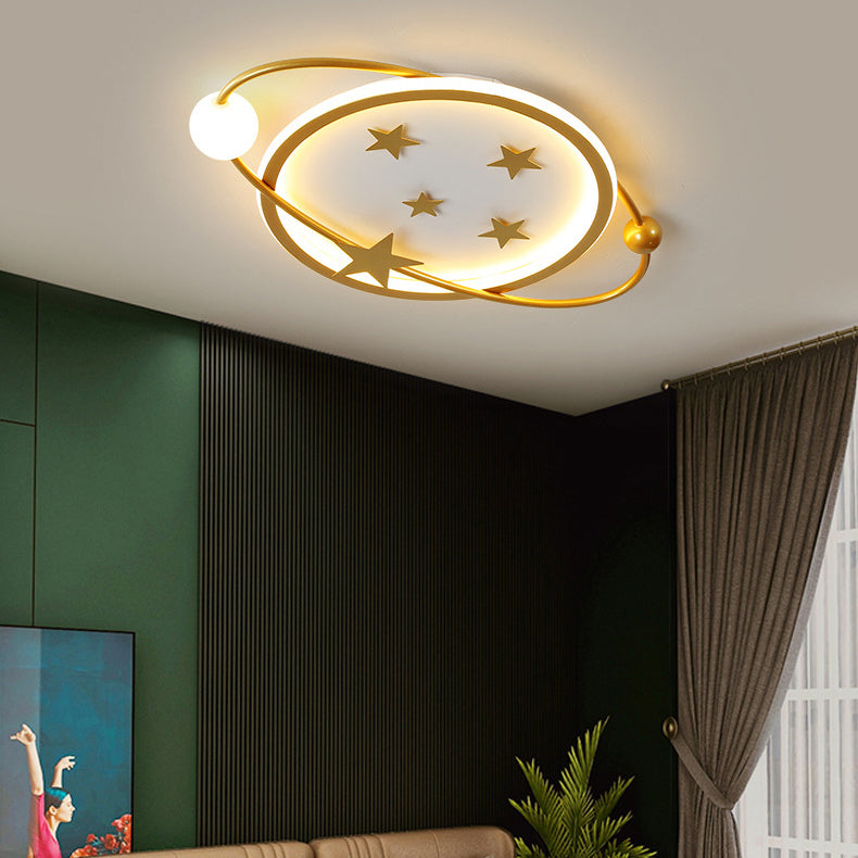 Contemporary Nordic Geometric Starry Hanging Acrylic Round LED Flush Mount Ceiling Light For Bedroom
