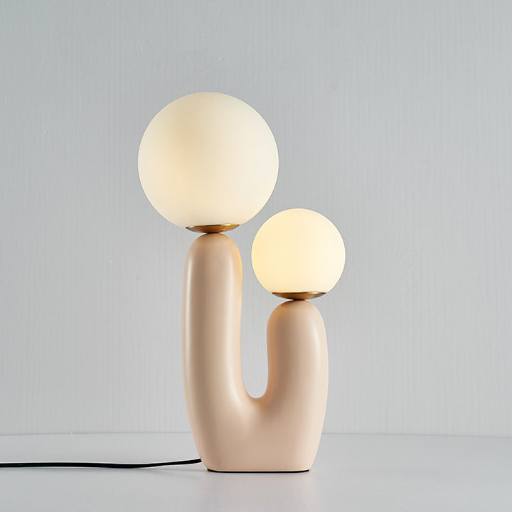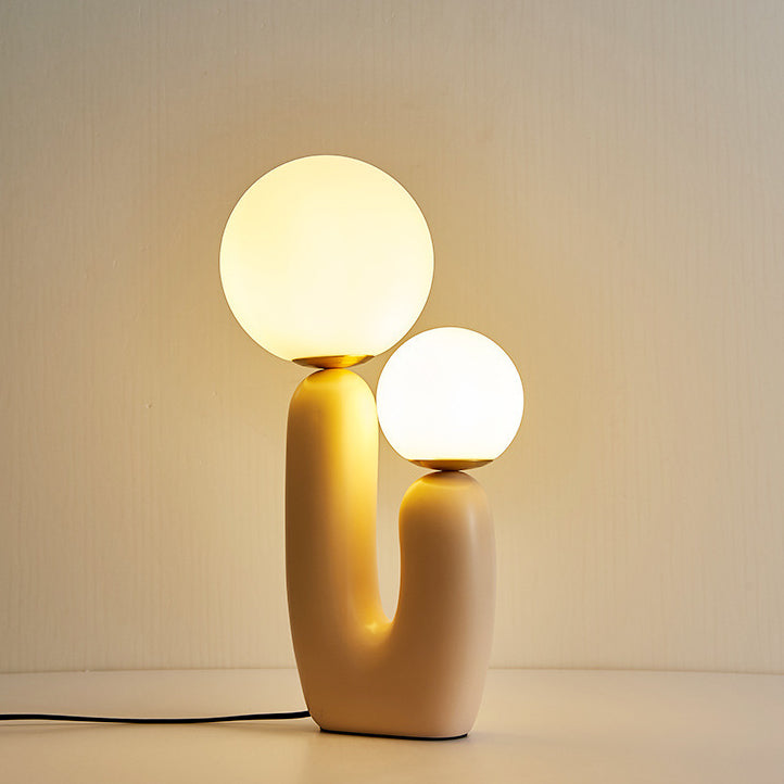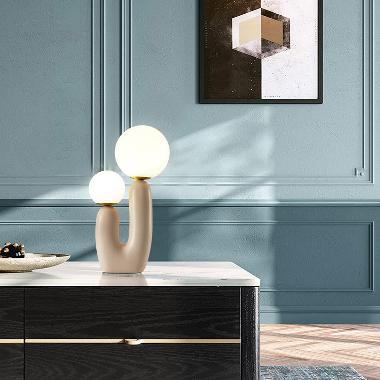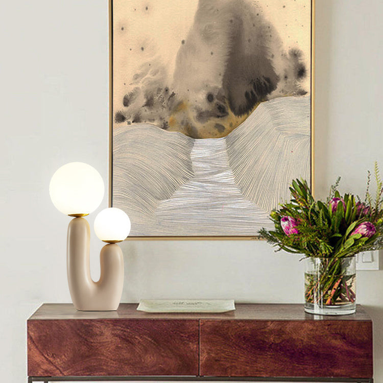Contemporary Nordic Glass Ball Shade Resin U-Shaped Base 2-Light Table Lamp For Bedroom