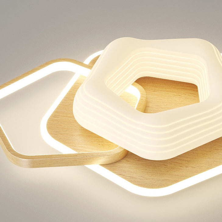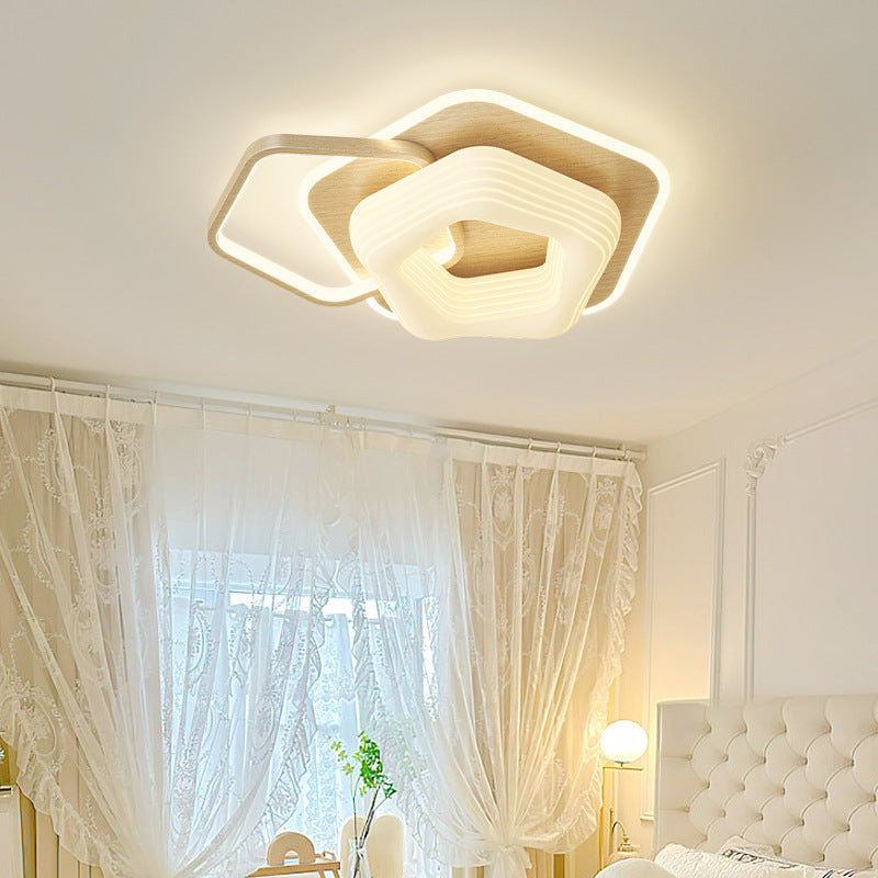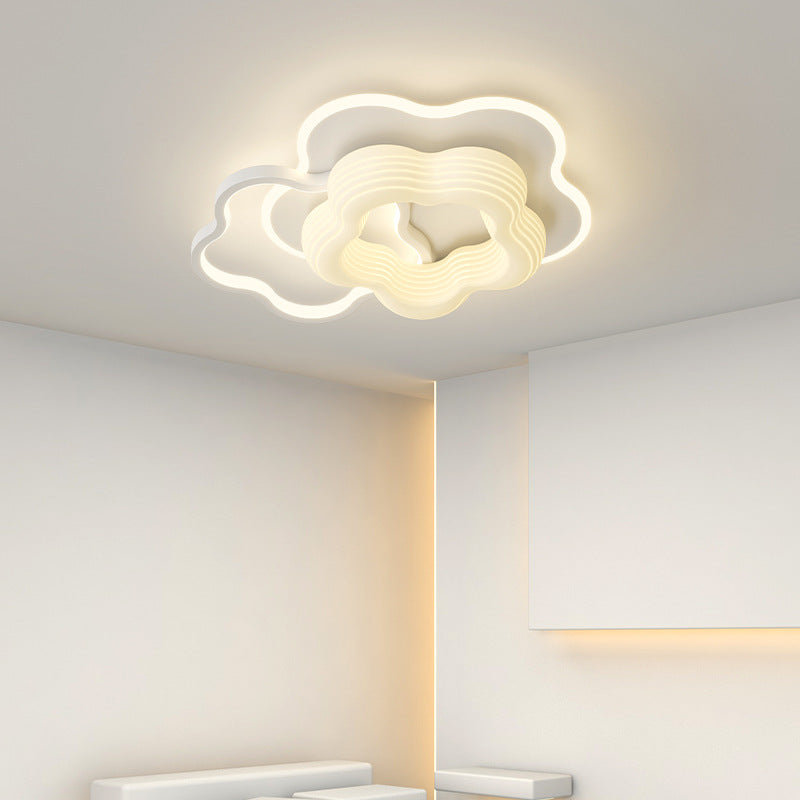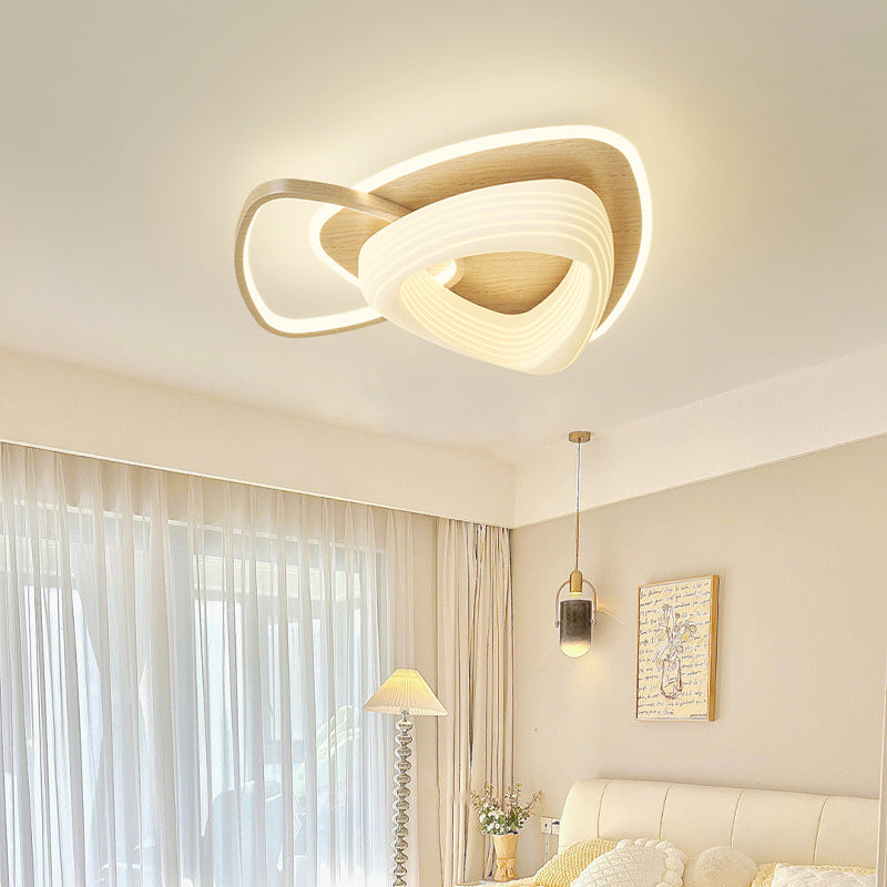 Contemporary Nordic Hardware PE Flower Triangle Round LED Flush Mount Ceiling Light For Bedroom
