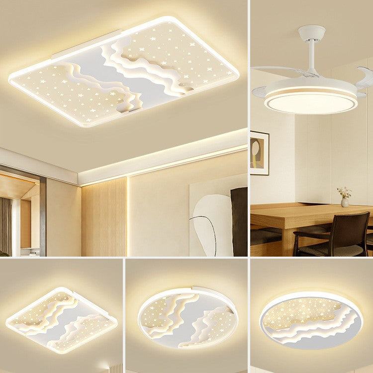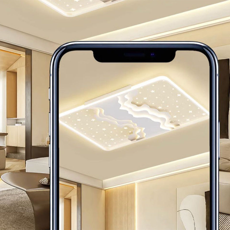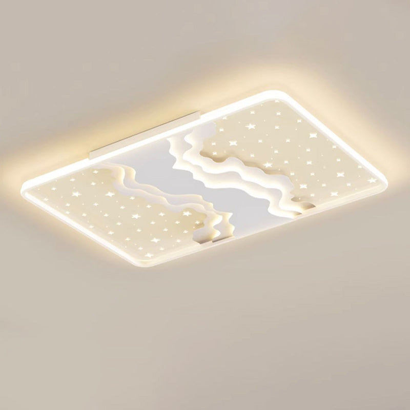 Contemporary Nordic Iron Acrylic Starry Sky Ocean Round Square Rectangular LED Flush Mount Ceiling Light For Bedroom