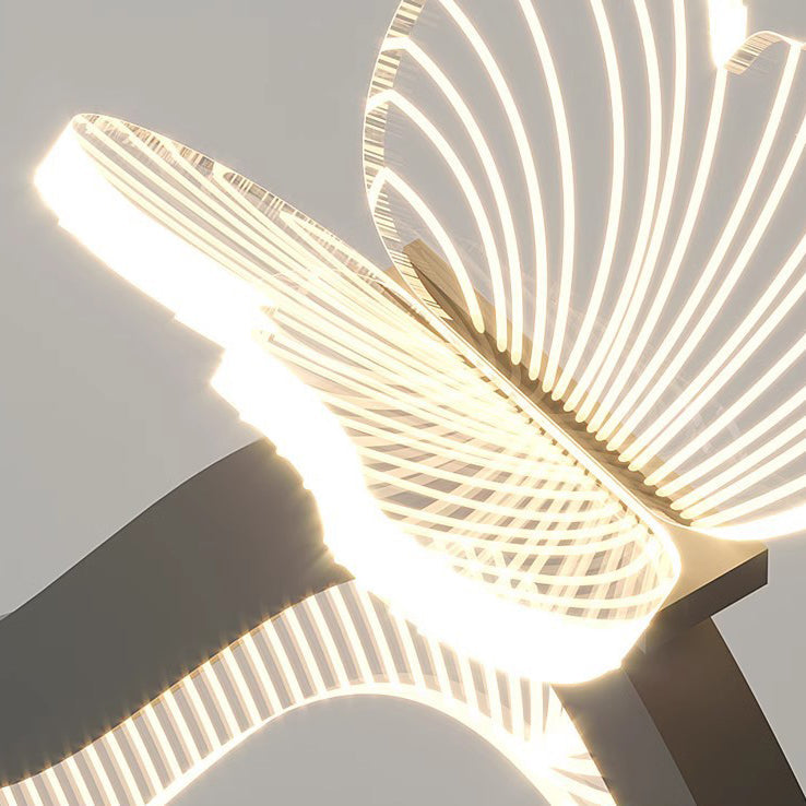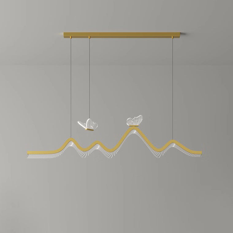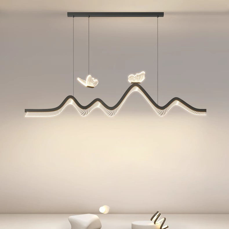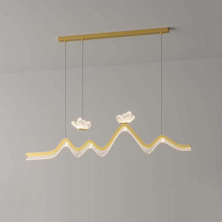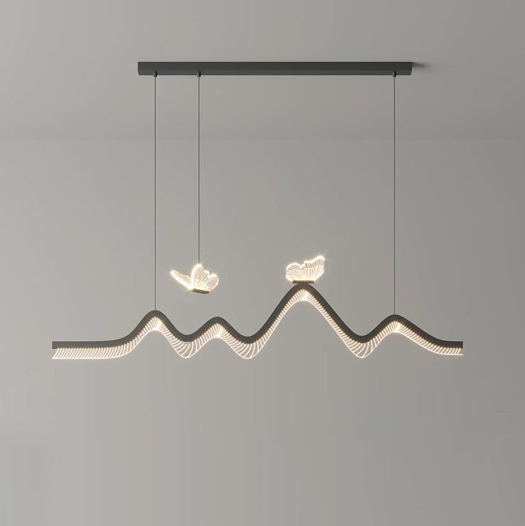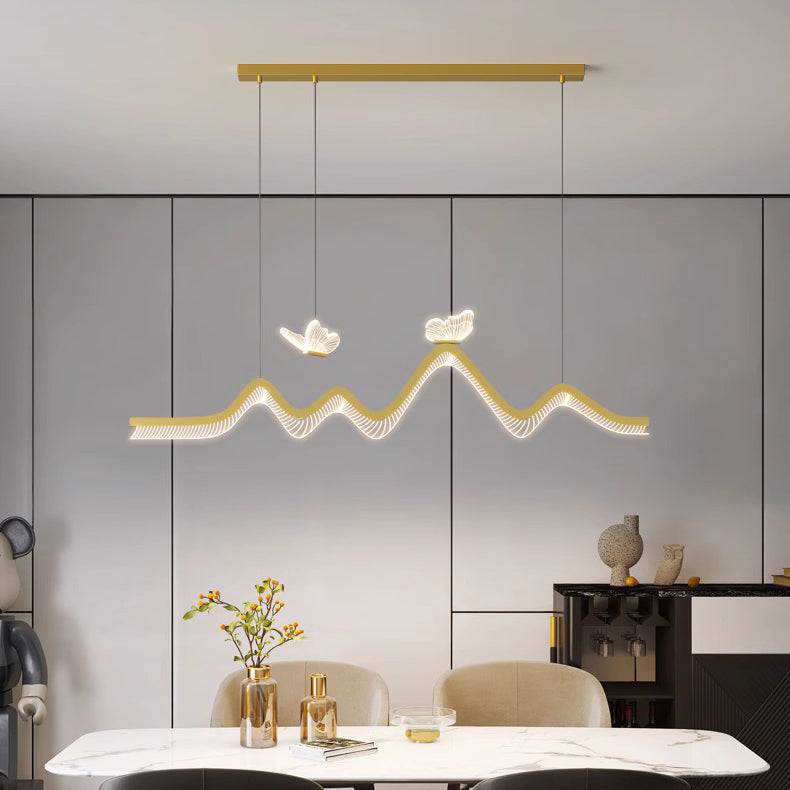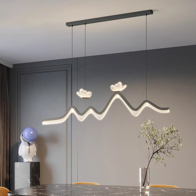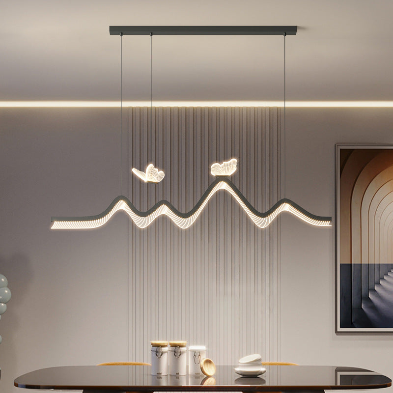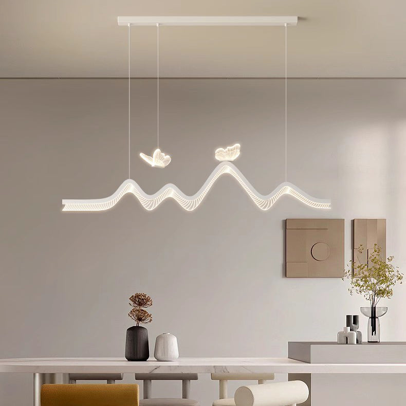 Contemporary Nordic Iron Aluminum Acrylic Butterfly Wave LED Chandeliers Island Light For Dining Room