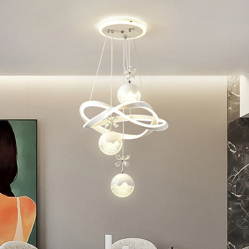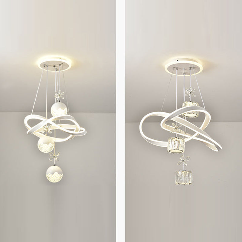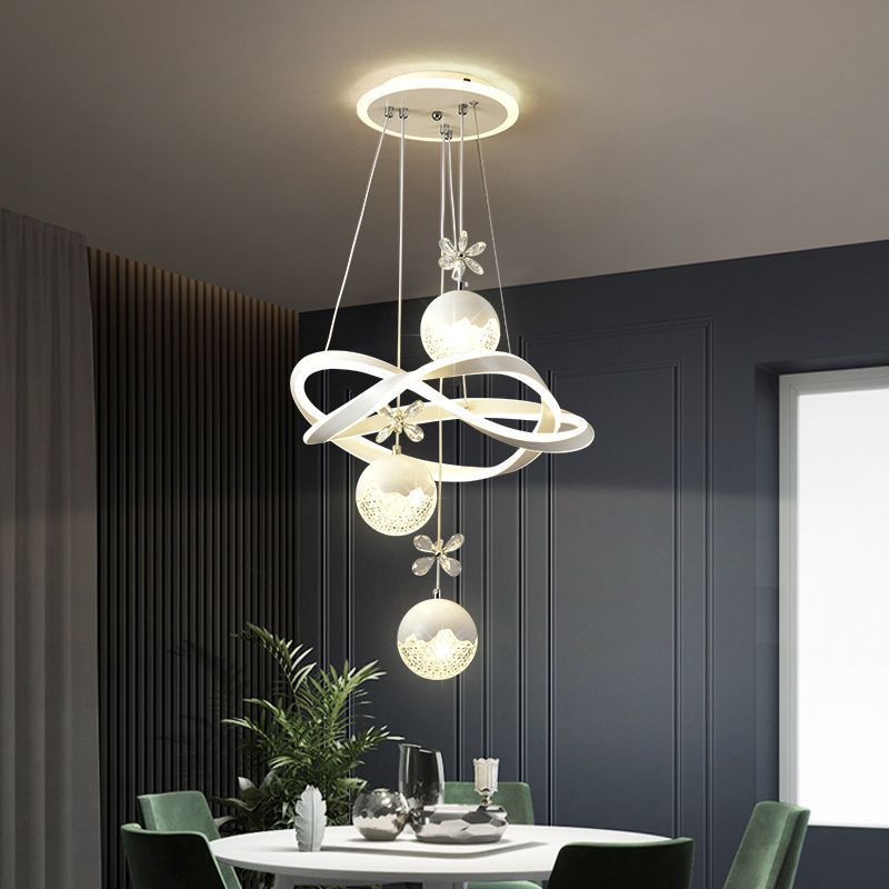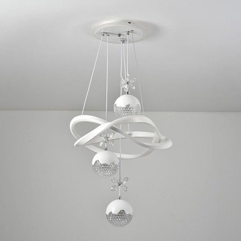 Contemporary Nordic Iron Aluminum Crystal PVC Twisted Ball Cylinder LED Chandeliers For Dining Room