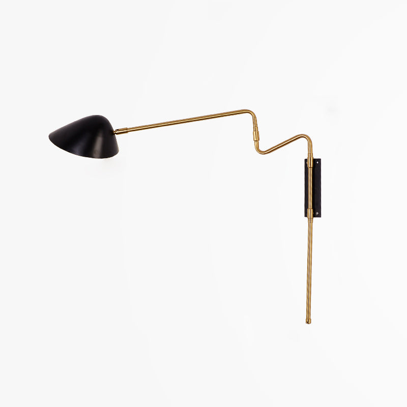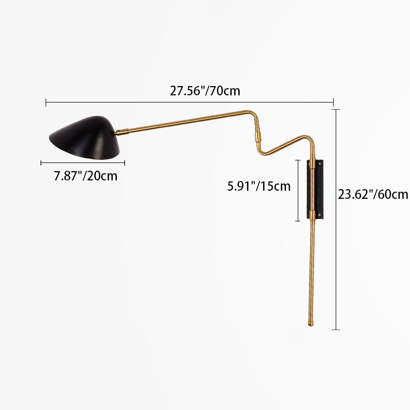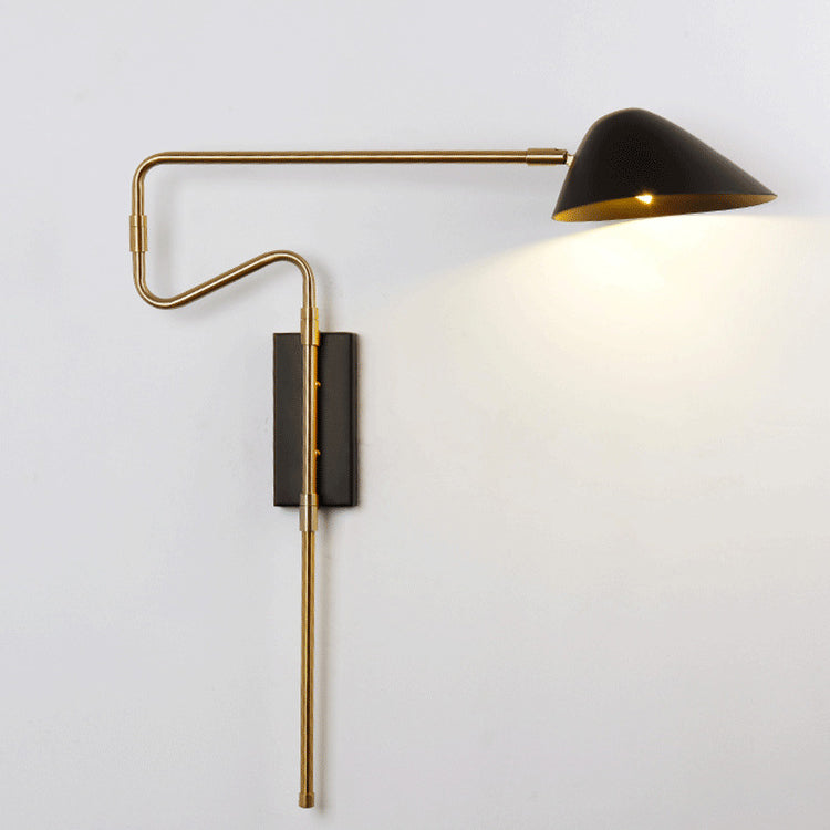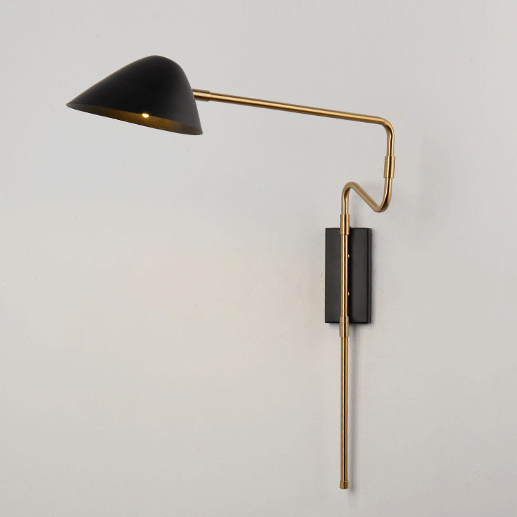 Contemporary Nordic Iron Conical Shade With Long Rod Rocker Arm 1-Light Wall Sconce Lamp For Living Room