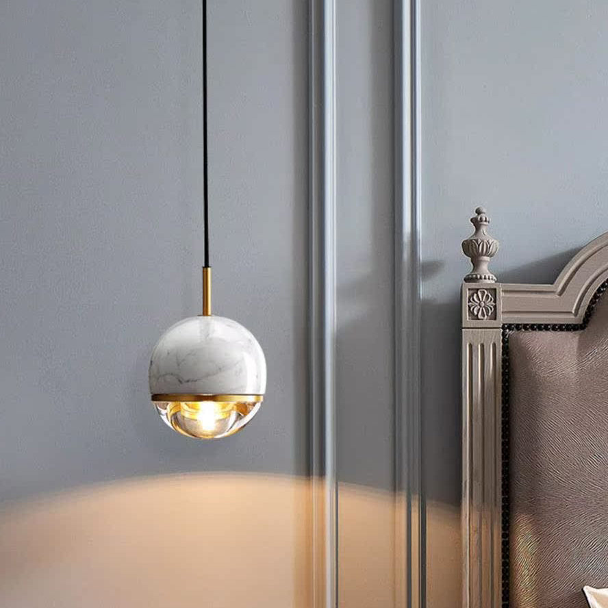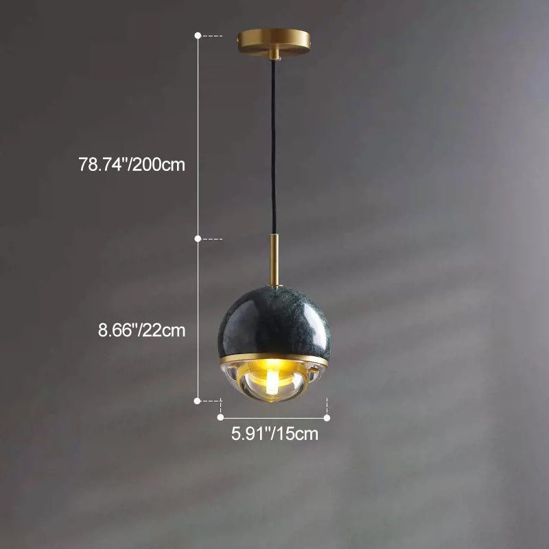 Contemporary Nordic Iron & Glass Globe 1-Light Pendant Light With Adjustable Cord For Bedroom, Living Room & Dining Room