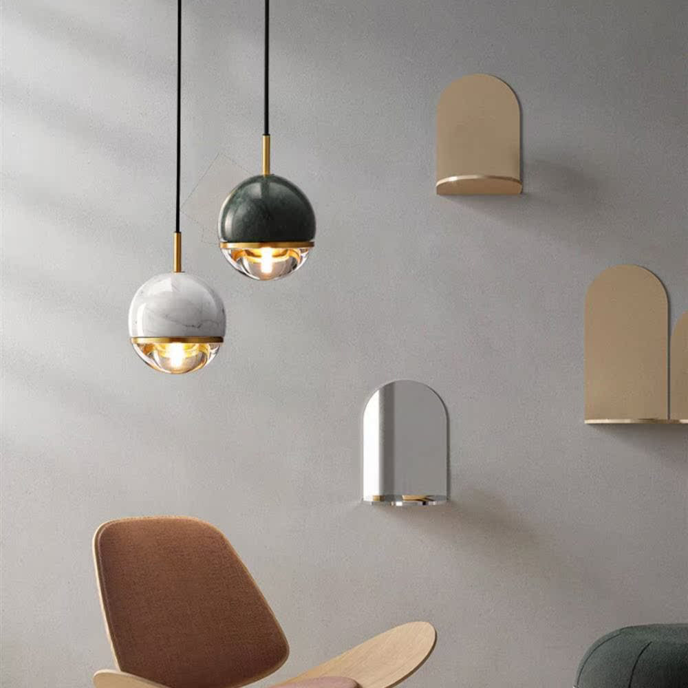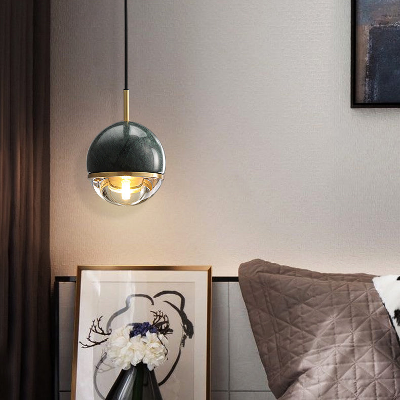 This modern Nordic pendant light features a spherical iron and glass design in elegant green or white, perfect for bedrooms, living rooms, and dining areas. The adjustable hanging cord adds versatility, making it an ideal minimalist lighting solution for cozy yet sophisticated interiors.