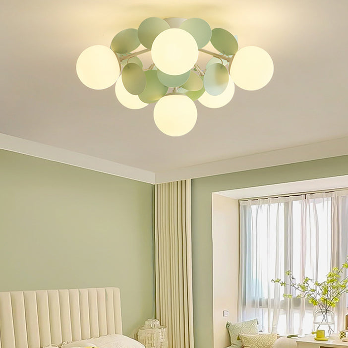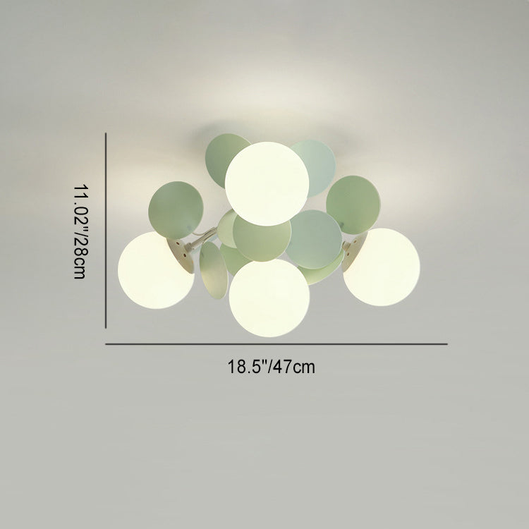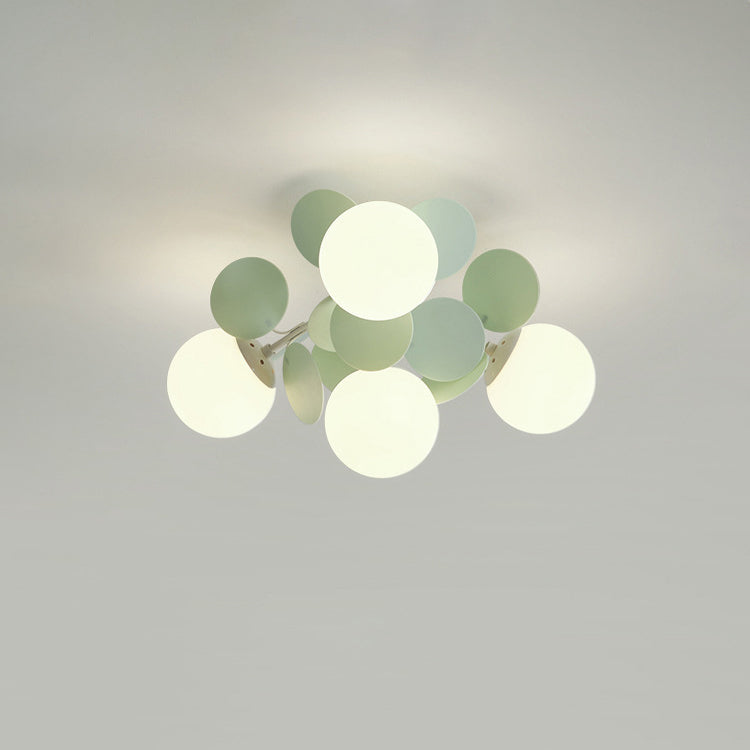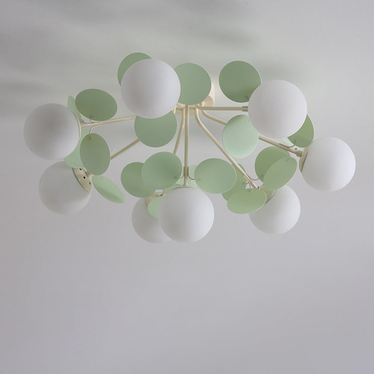 Contemporary Nordic Iron Glass PVC Ball Round Pieces 4/6/8/9/12 Light Semi-Flush Mount Ceiling Light For Bedroom