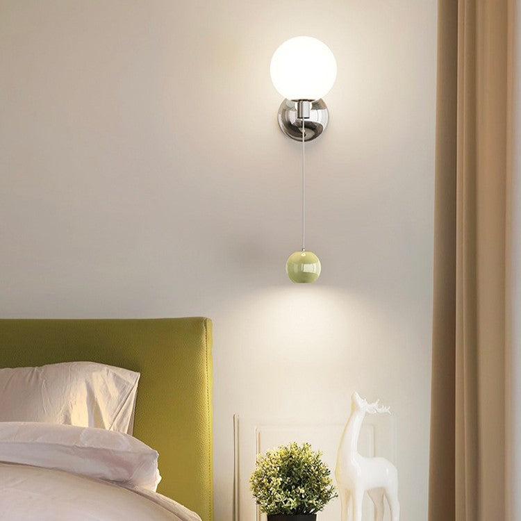 Contemporary Nordic Iron Glass Spherical Shade LED Wall Sconce Lamp For Bedroom