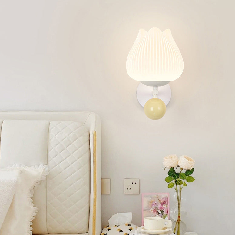 Contemporary Nordic Iron PE Orchid Striped Ball 1-Light Wall Sconce Lamp For Bedside