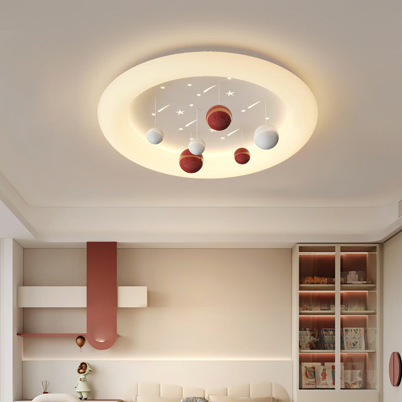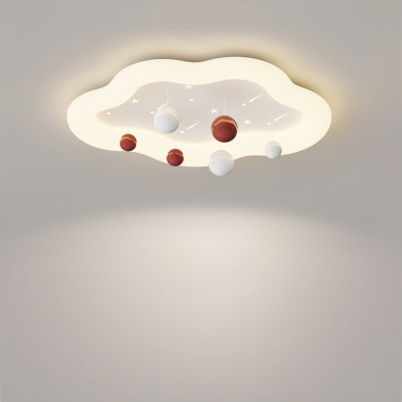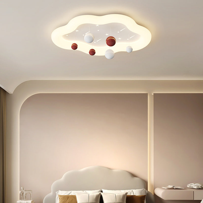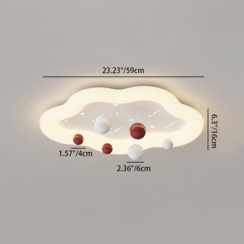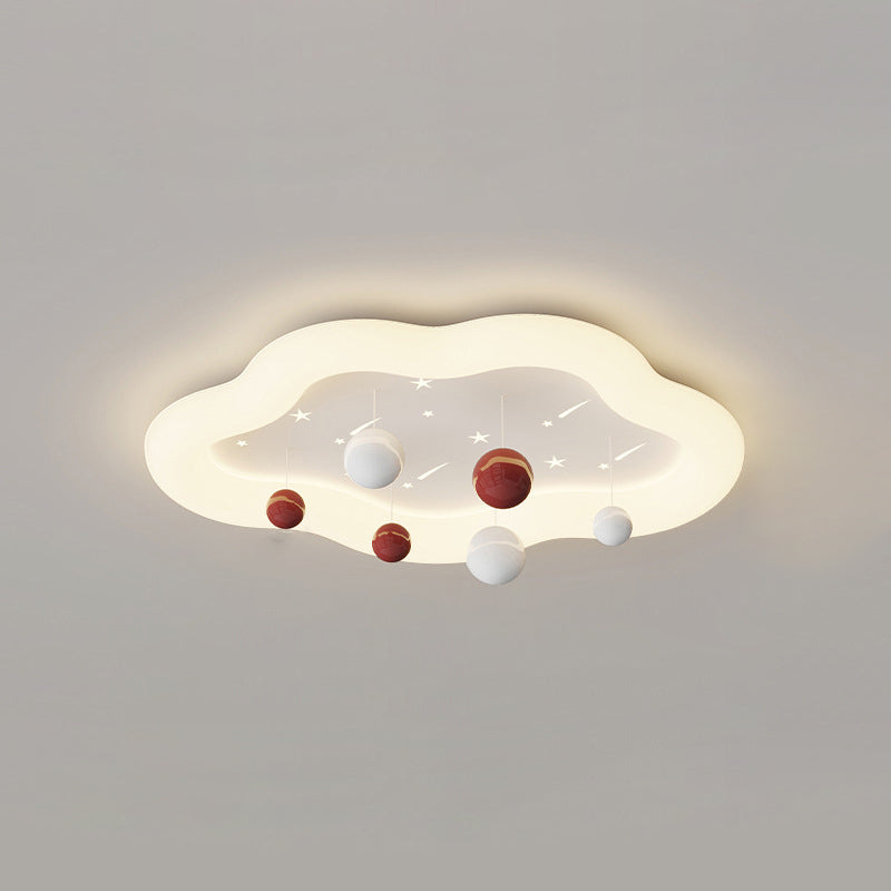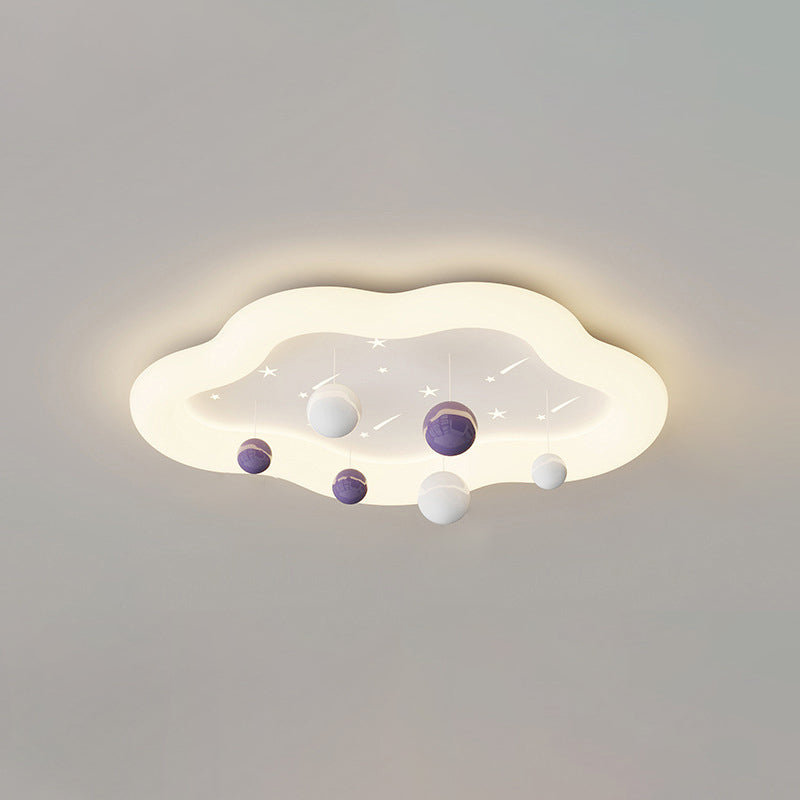 Contemporary Nordic Kids Cloud Round Ball Falling Star Iron PE Flush Mount Ceiling Light For Bedroom