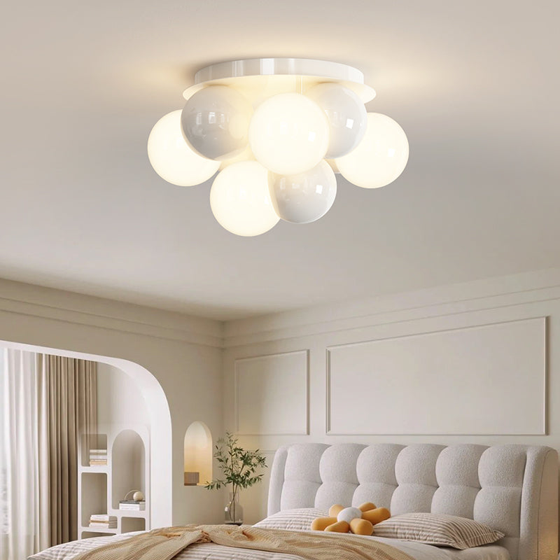 Contemporary Nordic Kids Iron Glass Ball Round Base 5-Light Semi-Flush Mount Ceiling Light For Bedroom