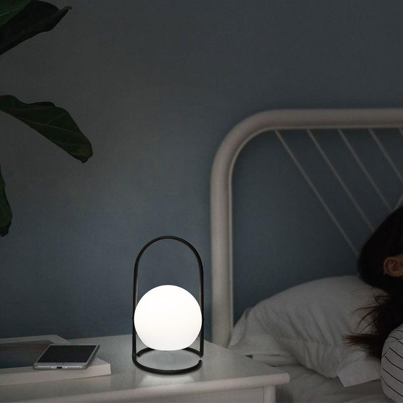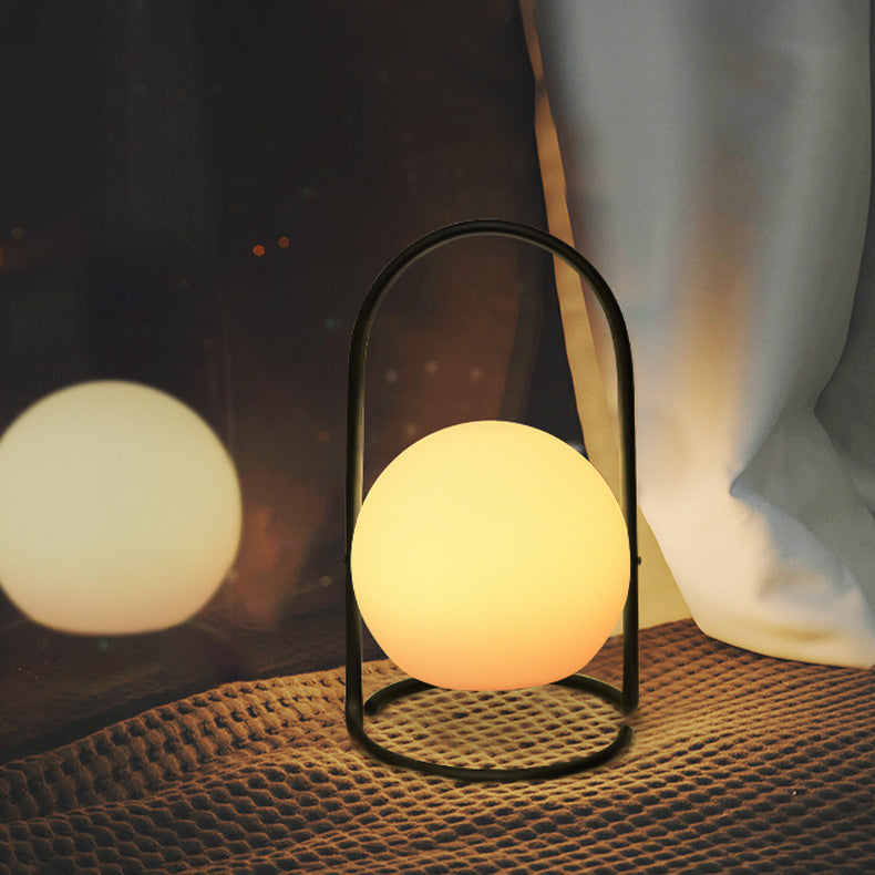 Contemporary Nordic Metal PE Ball Egg Cube Cylinder LED Hanging Rechargeable Table Lamp For Bedside