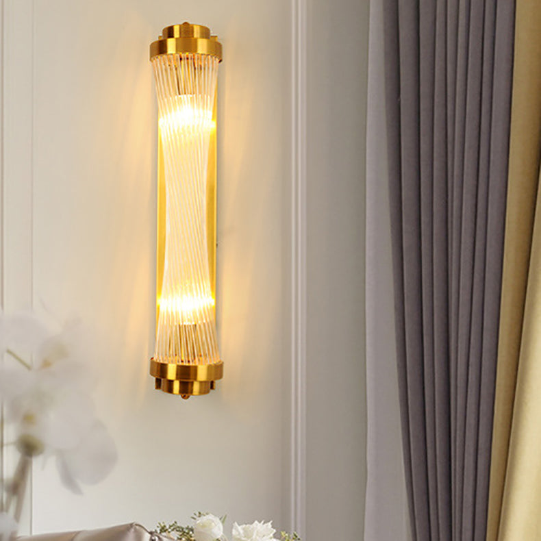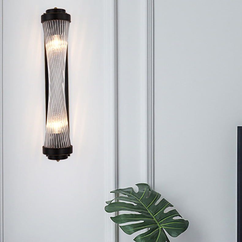 Contemporary Nordic Metal Stainless Steel Crystal Column Tower 2-Light Wall Sconce Lamp For Hallway