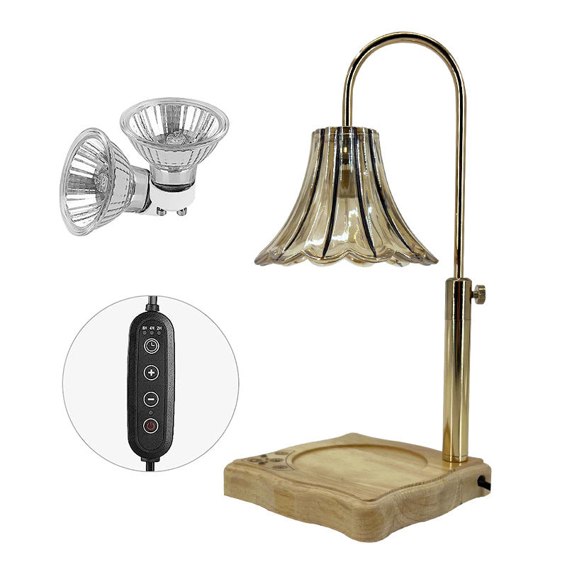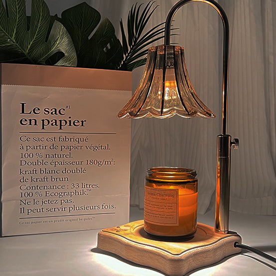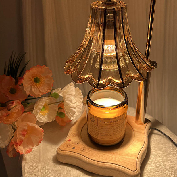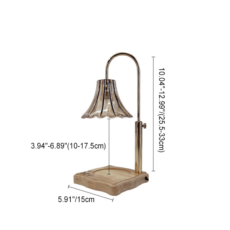 Contemporary Nordic Morning Glory Glass Shade Wood Base 1-Light Melting Wax Table Lamp For Bedroom