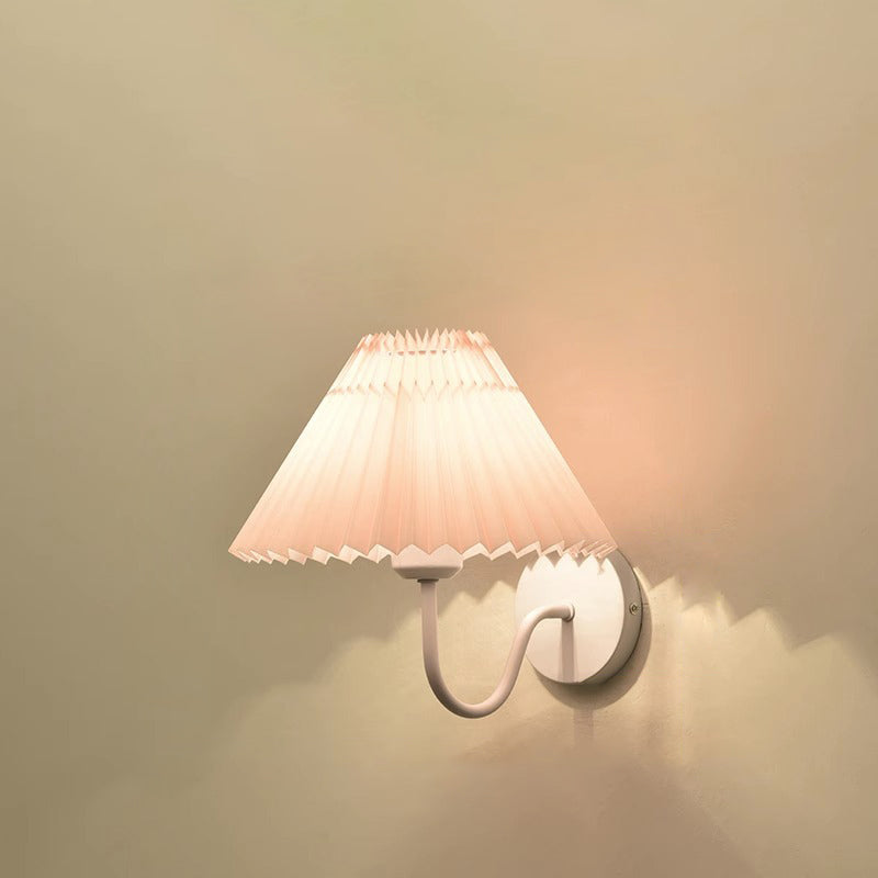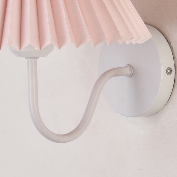 Contemporary Nordic Mushroom Curved Rod Iron Fabric 1-Light Wall Sconce Lamp For Bedroom