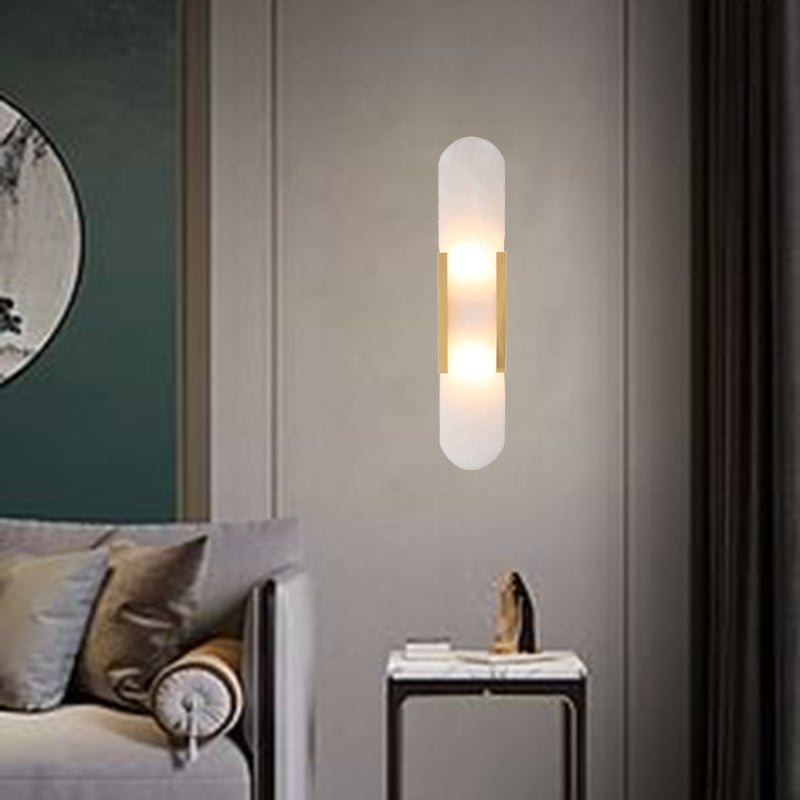 Contemporary Nordic Oval Iron Stone 2-Light Wall Sconce Lamp For Living Room